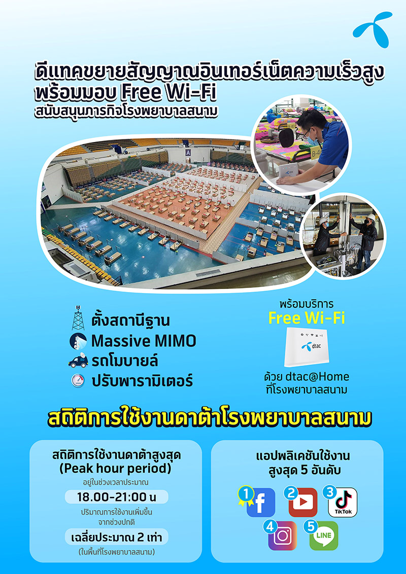 - เปิดให้บริการ Free Wi-Fi ที่โรงพยาบาลสนามผ่าน dtac@Home