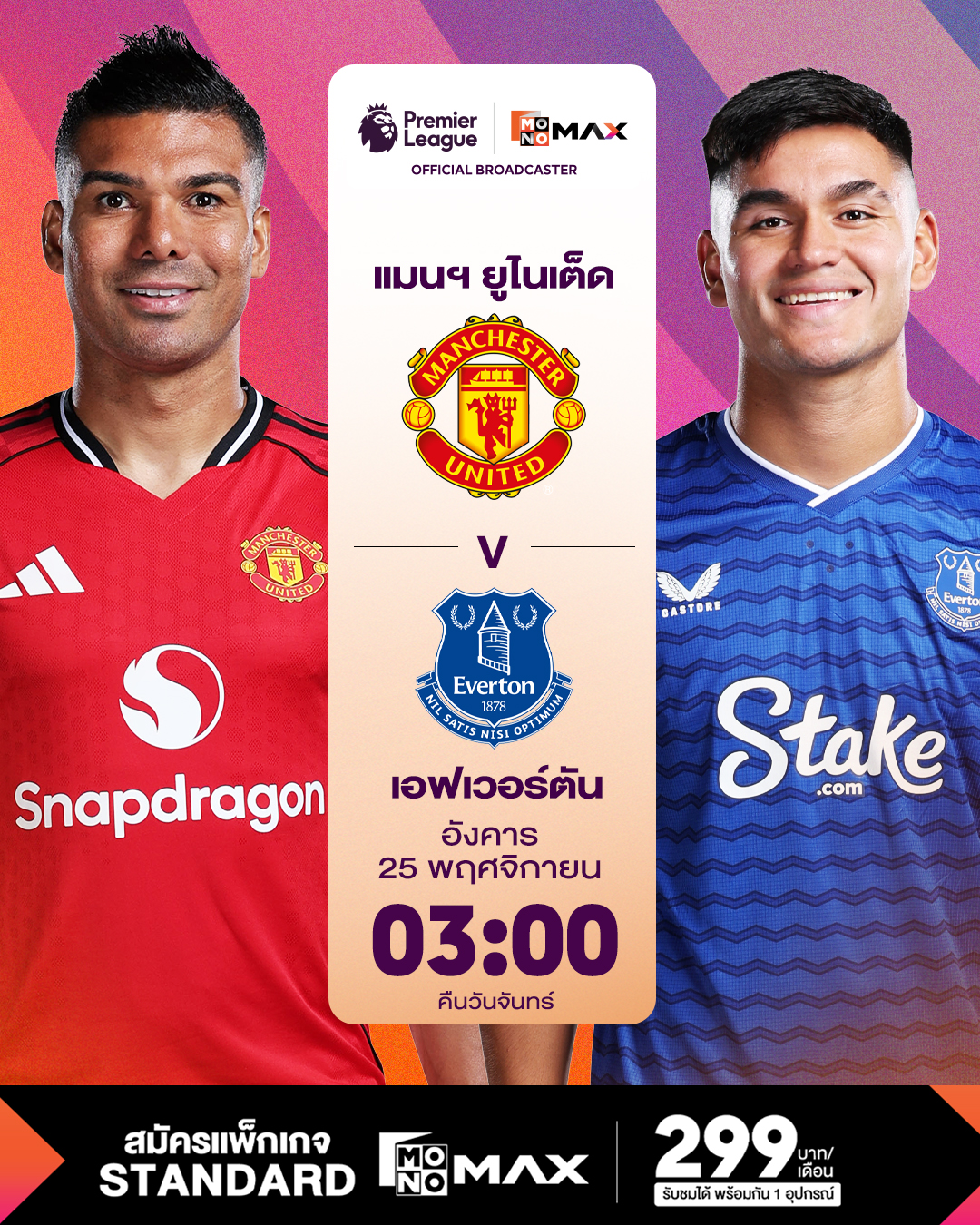 ปิดท้ายสุดสัปดาห์ ช่วงเช้ามืดวันอังคารที่ 25 พฤศจิกายน เวลา 03.00 น. (คืนวันจันทร์ที่ 24 พฤศจิกายน 2568) กับคู่ แมนเชสเตอร์ ยูไนเต็ด พบ เอฟเวอร์ตัน โดยเจ้าถิ่นต้องการชัยชนะเพื่อขยับอันดับ ส่วนท๊อฟฟี่พร้อมสู้ด้วยเกมที่เน้นความดุดันและการไล่บอลแบบไม่ยอมถอย ยิงสดทาง Monomax