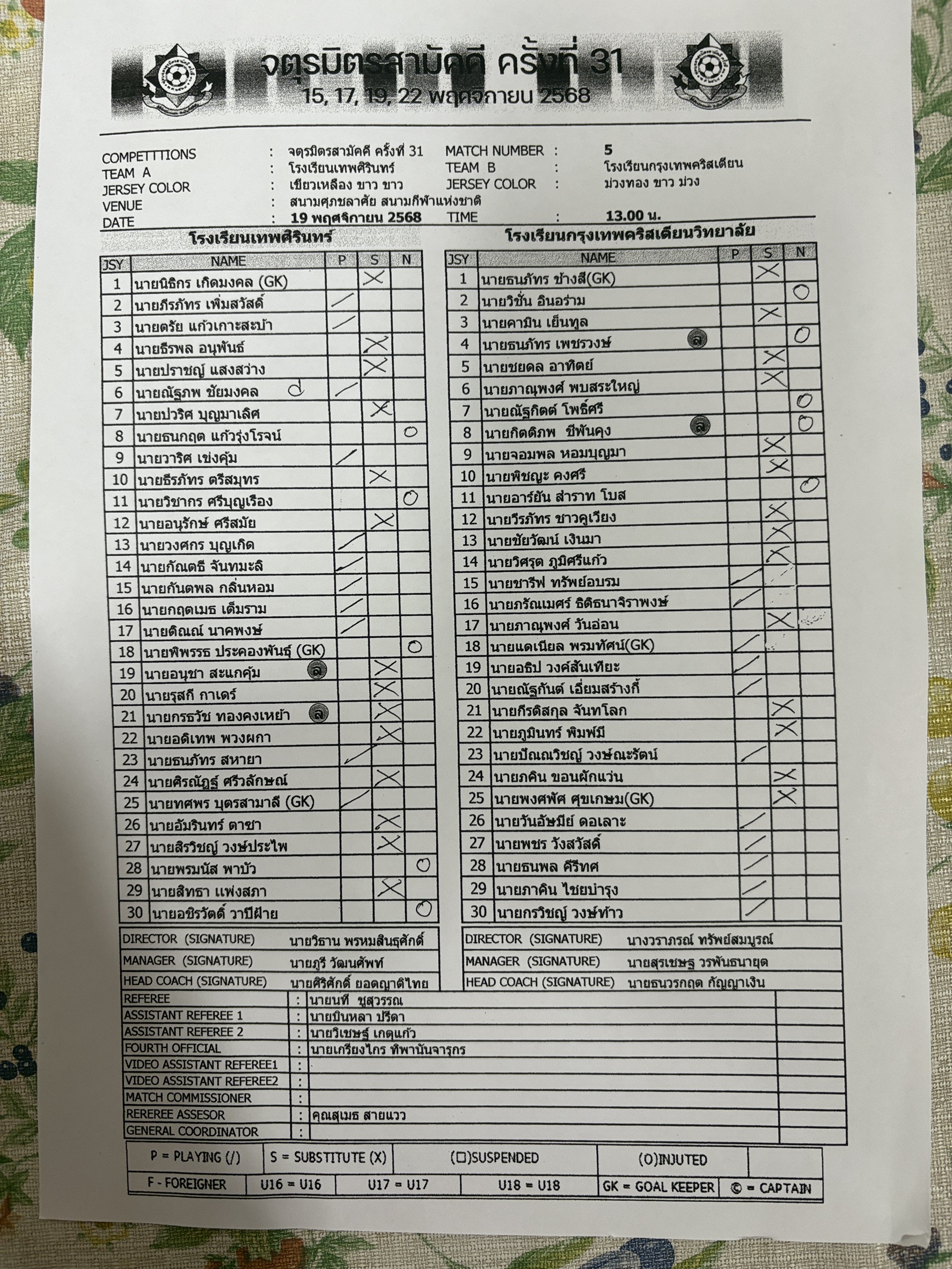 การแข่งขันฟุตบอลจตุรมิตรสามัคคี ครั้งที่ 31 เมื่อวันที่ 19 พ.ย. เป็นการเล่นรอบแรก นัดสุดท้าย คู่แรก “ลูกแม่รำเพย” เทพศิรินทร์ พบ “ชงโคสีม่วง” กรุงเทพคริสเตียน โดยทั้งคู่ต่างคว้าชัยชนะมาใน 2 เกมแรก ผ่านเข้าไปชิงชนะเลิศ ในวันที่ 22 พ.ย.นี้ แน่นอนแล้ว ทำให้ต่างส่งผู้เล่นสำรองลงนามแบบยกทีม