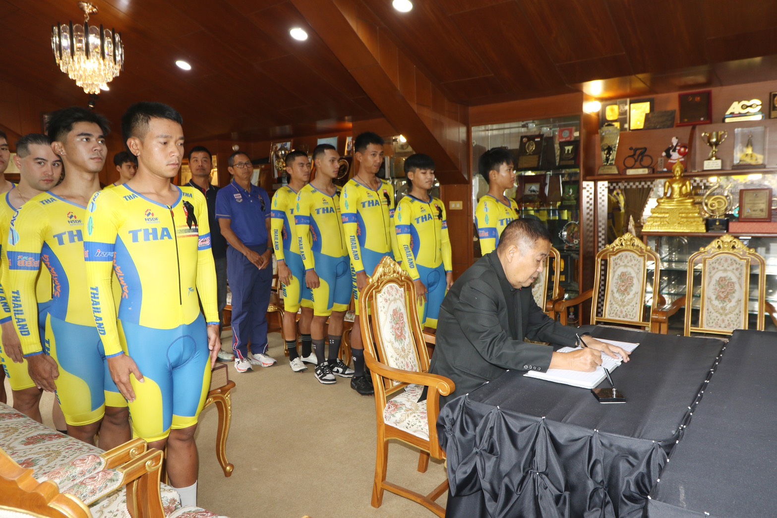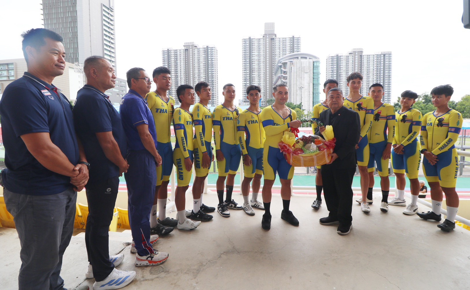 “เสธ.หมึก” ให้กำลังใจนักกีฬาประเภทลู่ปิดท้ายก่อนการแข่งขันกีฬาซีเกมส์ ครั้งที่ 33 พร้อมทั้งชี้แจงรายละเอียดสิทธิต่าง ๆ ที่นักกีฬาจะได้รับ ทั้งเรื่องเบี้ยเลี้ยง-อาหาร-ที่พัก โดยสมาคมกีฬาจักรยานฯ ดูแลอย่างดีไม่มีขาดตกบกพร่อง ให้นักกีฬาพักโรงแรมที่ได้มาตรฐาน ค่าส่วนต่างที่เกิดขึ้นสมาคมฯ รับผิดชอบเองทั้งหมด โดยสำรองจ่ายไปก่อน เพื่อสร้างขวัญและกำลังใจให้แก่นักกีฬาทุกคน ส่วนเป้าหมายในกีฬาซีเกมส์ครั้งนี้ ยังยืนยันอย่างน้อย 6 เหรียญทองเช่นเดิม