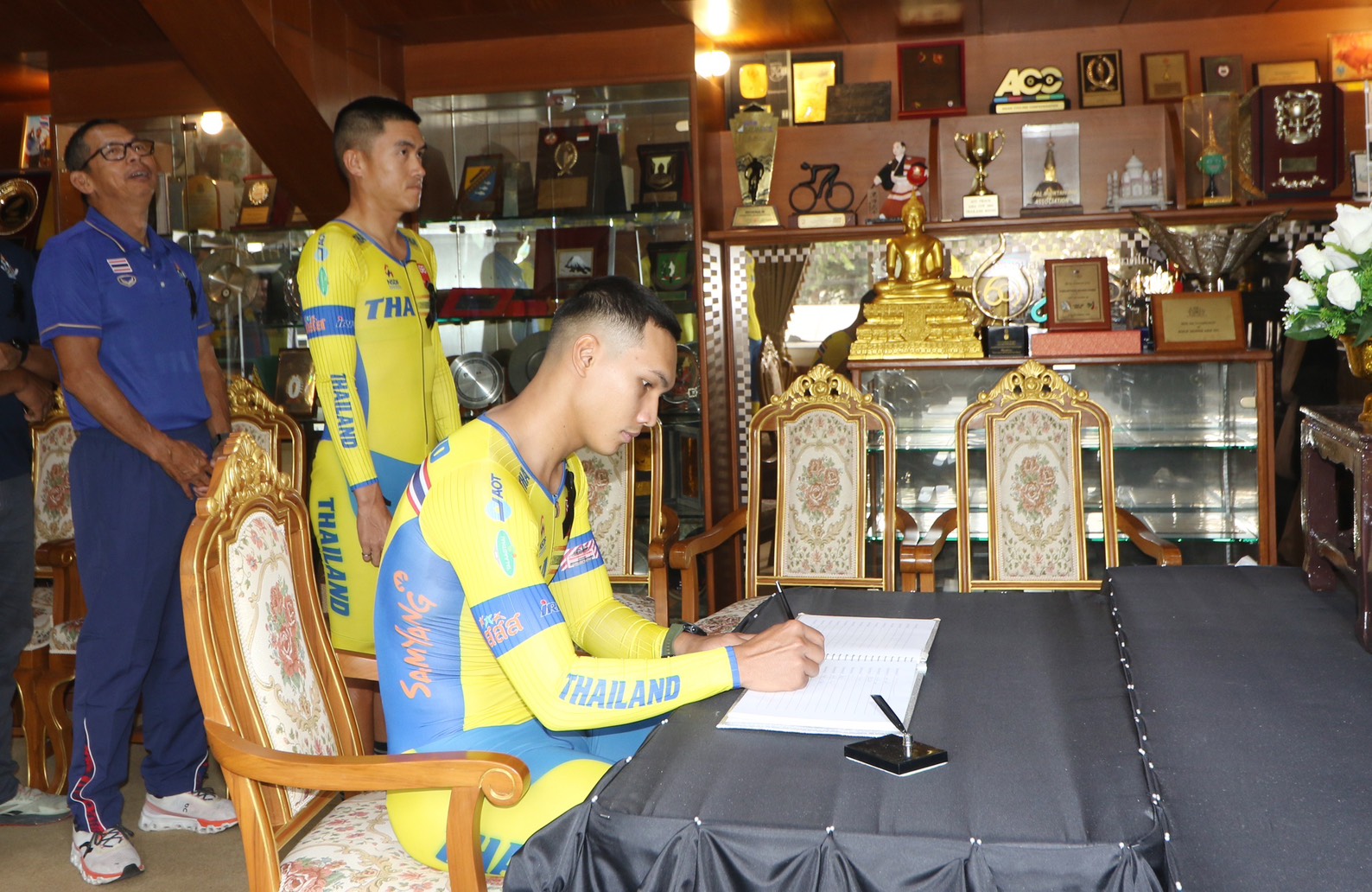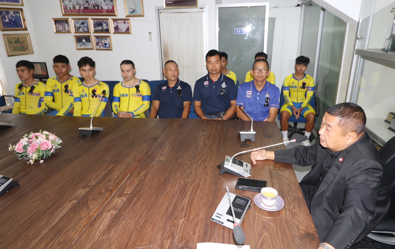 หลังจากนั้น พลเอกเดชา เปิดเผยว่า วันนี้ตนได้ชี้แจงให้นักกีฬาทีมชาติไทยได้รับทราบถึงสิทธิที่นักกีฬาจะได้รับจากการกีฬาแห่งประเทศไทย (กกท.) ในเรื่องเบี้ยเลี้ยงสมาคมกีฬาจักรยานฯ ได้สำรองจ่ายให้นักกีฬาครบทุกเดือนก่อนที่จะได้รับตามระบบจาก กกท. และกำลังจะจ่ายในเดือนพฤศจิกายนนี้ ส่วนเรื่องที่พัก-อาหาร สมาคมฯ ให้นักกีฬาเข้าพักในโรงแรมที่ได้มาตรฐาน ซึ่งสมาคมฯ จะรับผิดชอบค่าใช้จ่ายในส่วนที่เกินทั้งหมด ขณะเดียวกันสมาคมฯ ทางศูนย์วิทยาศาสตร์การกีฬาได้จัดอาหารเสริมมาให้นักกีฬา แต่นักกีฬายังมีความต้องการอาหารเสริมชนิดอื่น ๆ นอกเหนือจากที่ได้รับจากศูนย์วิทยาศาสตร์การกีฬา สมาคมฯ ก็ได้จัดหาอาหารเสริมมาเพิ่มเติมทำให้นักกีฬามีขวัญและกำลังใจในการฝึกซ้อม