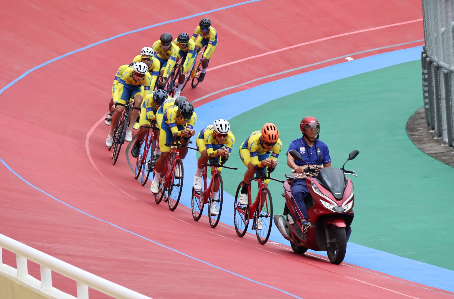 พลเอกเดชา กล่าวอีกว่า ในส่วนของการปรับปรุงสนามเวลโลโดรม ซึ่งสมาคมกีฬาจักรยานฯ ได้รับภารกิจจาก กกท. ให้ปรับปรุงสนามเพื่อให้มีความพร้อมที่สุดในการจัดการแข่งขันจักรยานประเภทลู่กีฬาซีเกมส์ ตนเองในฐานะเป็น Technical Delegate หรือผู้แทนด้านเทคนิคของกีฬาจักรยาน ก็ได้ตรวจสนามเรียบร้อยแล้วว่าถูกต้องตามกฎระเบียบของสหพันธ์จักรยานนานาชาติ (UCI) ทุกประการ จากเดิมสนามแห่งนี้ไม่มีรั้วกันตก เนื่องจากเป็นสนามแบบเก่าที่สร้างมาตั้งแต่การแข่งขันกีฬาเอเชี่ยนเกมส์ ครั้งที่ 13 เมื่อปี พ.ศ.2541 ล่าสุด สมาคมก็ได้ทำการติดตั้งรั้วกันตก และติดตั้งฟองน้ำกันกระแทกรอบสนาม พร้อมทั้งปรับปรุงส่วนต่าง ๆ ทั้งการทาสีพื้นสนาม ทาสีอาคาร และการปรับปรุงส่วนอื่น ๆ ตามที่ กกท.กำหนด รวมไปถึงสนามเสือภูเขา ที่สวนสัตว์เปิดเขาเขียว จังหวัดชลบุรี และสนามบีเอ็มเอ็กซ์ ที่สวนกีฬากมล เขตหนองจอก กทม. เสร็จสมบูรณ์ 100% ทุกแห่ง