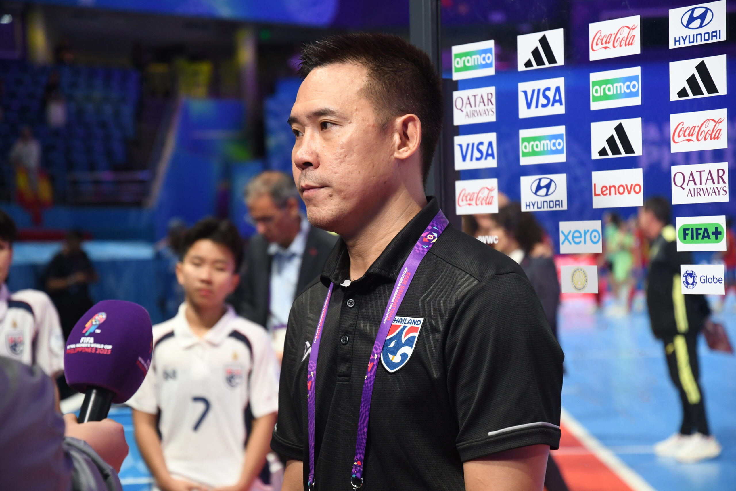 ธนาธร สันทนาประสิทธิ์ หัวหน้าผู้ฝึกสอน ฟุตซอลหญิงทีมชาติไทย ให้สัมภาษณ์หลังการแข่งขันฟุตซอลหญิงชิงแชมป์โลก 2025 กลุ่มบี นัดแรก