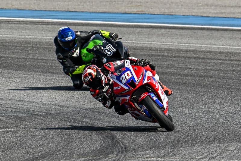 รุ่นซูเปอร์ไบค์ 1,000 ซีซี (SB1 Pro) ไฮไลน์ของรายการที่ดวลกันด้วยรถแข่งที่เร็วและแรงที่สุด ดาวรุ่งไทยฮอนด้า “มิกซ์” ธนัช ละอองปลิว หมายเลข 31 จาก อิเดมิตสึ ฮอนด้า ทีม คริสมาส บิด Honda CBR1000RR-R ทำเวลาในการควอลิฟายมาในกริดที่ 2 เริ่มต้นเกมได้อย่างแข็งแกร่งชาร์จความเร็วขึ้นมาเป็นผู้นำได้ทันที โดยปักหลักดวลความเร็วกับคู่แข่งที่มีประสบการณ์มากกว่าเพื่อลุ้นชัยชนะ “มิกซ์-ธนัช” ขึ้นนำและรักษาอันดับที่ 1 มาจนถึงรอบสุดท้าย โดยรับมือกับความกดดันได้อย่างยอดเยี่ยม โดยโค้งสุดท้ายซึ่งเป็นโค้งตัดสินในเรซนี้ เข้ามาด้วยไลน์ที่ค่อนข้างเสียเปรียบ ก่อนคว้าชัยชนะเก็บอันดับที่ 2 มาครอง
