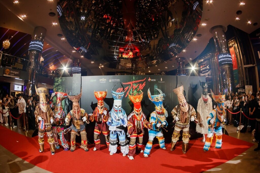 สร้างปรากฏการณ์ความขลังพรมแดง! ภาพยนตร์ไทยฟอร์มยักษ์ “ตาโขน The Cursed Mask” เมื่อ STAR HUNTER ENTERTAINMENT จับมือกับแพลตฟอร์มวิดีโอออนไลน์ระดับแนวหน้า iQIYI (อ้ายฉีอี้) พร้อมได้รับการสนับสนุน จาก กระทรวงวัฒนธรรม และ CONTENT THAILAND จัดงานรอบ GALA PREMIERE อย่างยิ่งใหญ่ ท่ามกลางสื่อมวลชนและแฟนภาพยนตร์ที่เข้าร่วมงานอย่างเนืองแน่น ได้สร้างความประทับใจให้แก่วงการภาพยนตร์ไทยอย่างงดงาม เต็มไปด้วยมนต์เสน่ห์และพลังแห่งความเชื่อ กับไฮไลต์เปิดงานสุดตระการตา “ขบวนแห่ผีตาโขนจากอำเภอด่านซ้าย จังหวัดเลย” ที่เดินทางมาร่วมสร้างสีสันเฉพาะถิ่น ถ่ายทอดความศรัทธาและอัตลักษณ์วัฒนธรรมไทยอย่างทรงคุณค่า เรียกเสียงฮือฮาและสายตาที่จับจ้องทั่วทั้งฮอลล์ เป็นการต้อนรับผู้ชมเข้าสู่โลก ของตำนานต้องห้ามอย่างสมบูรณ์แบบ