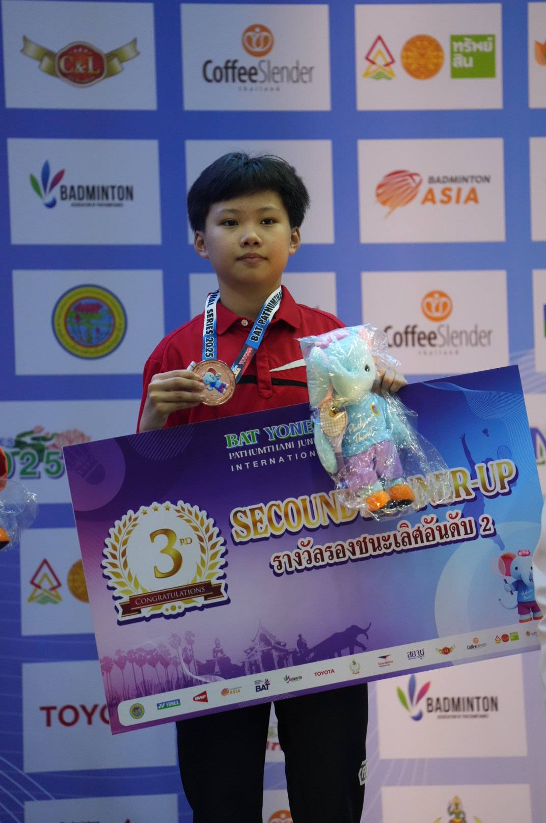 “สแตมป์” จรรยาพร มีพานทอง นักตบลูกขนไก่เยาวชนไทย โชว์ฟอร์มเหนือชั้น ผงาดคว้าแชมป์ประเภทหญิงเดี่ยว รุ่นอายุไม่เกิน 19 ปี ในการแข่งขันแบดมินตันทัวร์นาเมนต์เก็บคะแนนสะสมระดับเยาวชน BWF รายการ “บีเอที โยเน็กซ์ ปทุมธานี จูเนียร์ อินเตอร์เนชั่นแนล ซีรี่ย์ 2025” ชิงเงินรางวัลรวมกว่า 13,500 เหรียญสหรัฐ (ประมาณ 490,000 บาท) ที่อาคารยิมเนเซียม 5 มหาวิทยาลัยธรรมศาสตร์ ศูนย์รังสิต เมื่อวันอาทิตย์ที่ 23 พฤศจิกายน 2568