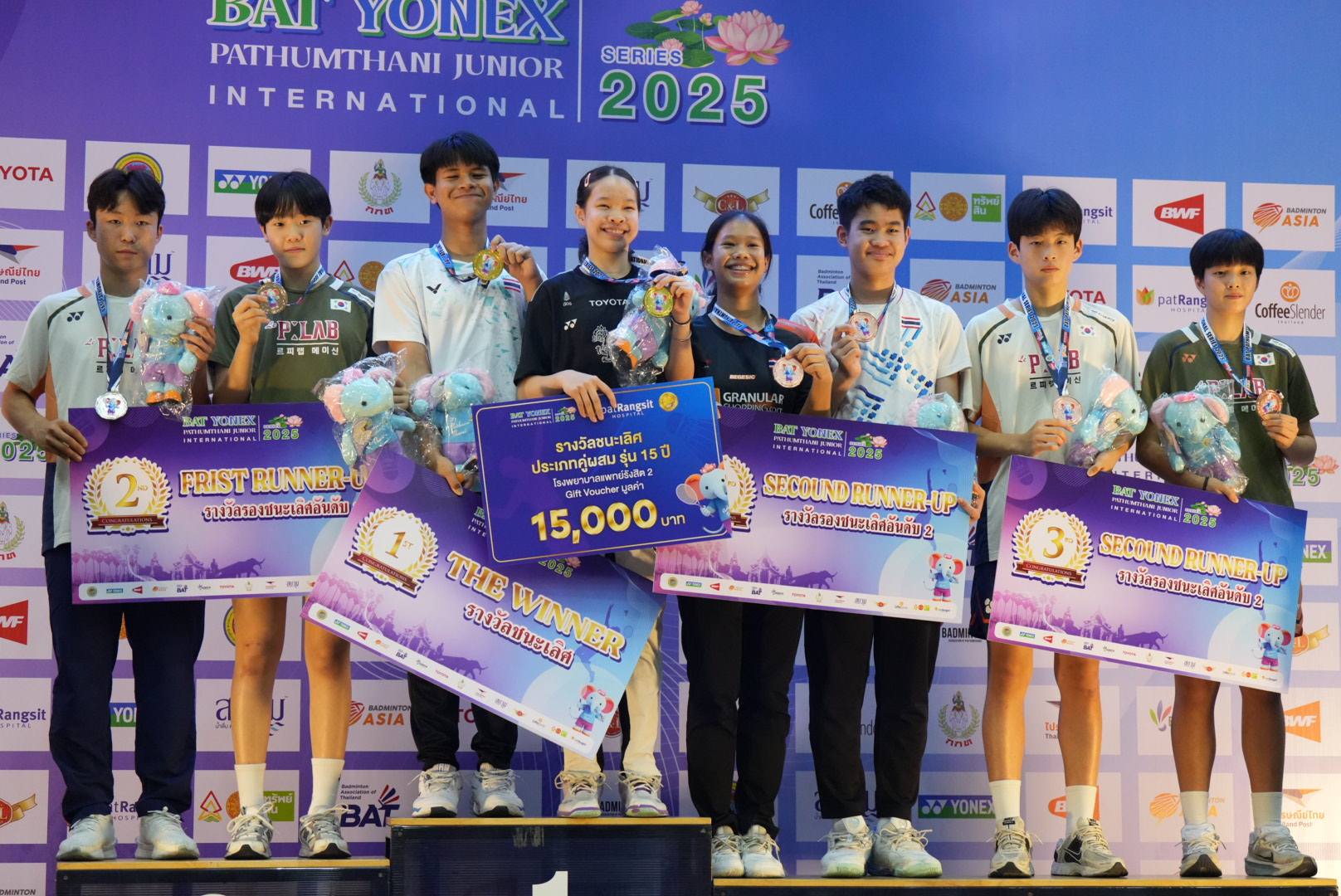 • คู่ผสม: ปัณณวัฒน์ แจ่มทับทิม/ฐิติวรดา บัวแก้ว (ไทย) ชนะ เตชินท์ วิริยชัยฤกษ์/พัทธรินทร์ เอี่ยมวารีศรีสกุล (ไทย) 21-18, 21-8