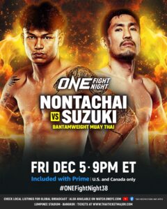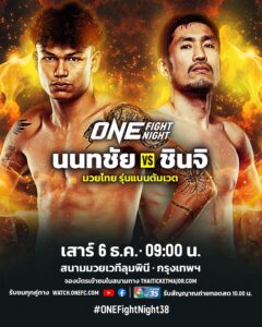 “นนทชัย จิตรเมืองนนท์” นักสู้ดีกรีแชมป์ Road To ONE Thailand ซีซัน 2 วัย 26 ปี จากชุมพร ได้คิวบู๊แทน “เลียม แฮร์ริสัน” จอมเก๋าจากสหราชอาณาจักร ที่ถอนตัวไปเนื่องจากบาดเจ็บ โดยจะดวลกับ “ชินจิ ซูซูกิ” กำปั้นรุ่นใหญ่ วัย 40 ปี เจ้าของแชมป์ Road To ONE ญี่ปุ่น ภายใต้กติกามวยไทย รุ่นแบนตัมเวต (135-145 ป.) ในศึก ONE Fight Night 38 ถ่ายทอดสดจากเวทีมวยลุมพินี (รามอินทรา) ช่วงไพรม์ไทม์อเมริกา ตรงกับเวลา 09.00 น. วันเสาร์ที่ 6 ธ.ค. 68