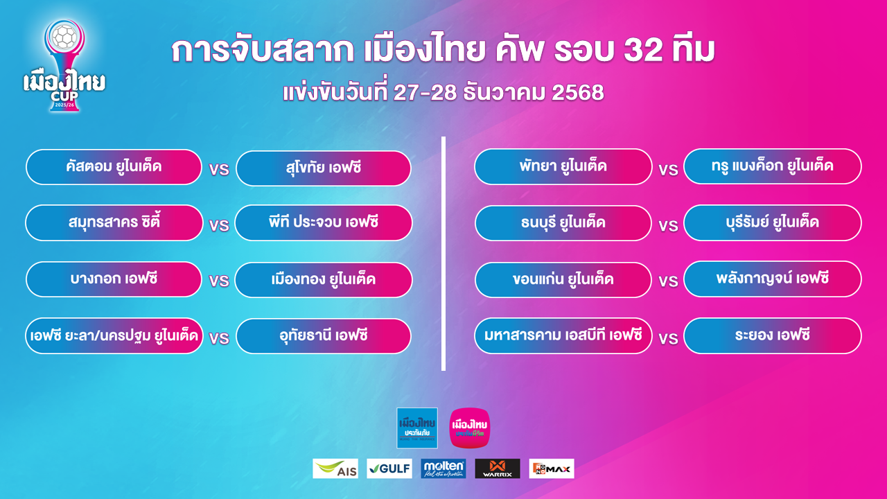 ส.บอลฯ ประกบคู่ “เมืองไทย คัพ” ฤดูกาล 2025/26 รอบ 32 ทีม
