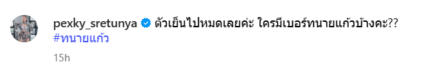 เท่านั้นยังไม่พอ “เป๊กกี้” ยังเขียนแคปชั่นแบบตรงไปตรงมาว่า “ตัวเย็นไปหมดเลยค่ะ ใครมีเบอร์ทนายแก้วบ้างคะ?? #ทนายแก้ว” หลังโพสต์ดังกล่าวเผยแพร่ออกไป เหล่าคนในวงการบันเทิง รวมถึงแฟนคลับจำนวนมาก ต่างพาเข้าไปคอมเมนต์ให้กำลังใจ ขณะที่บางคนเชียร์ให้ “ทนายแก้ว” เข้ามาช่วยแบบโดยไว