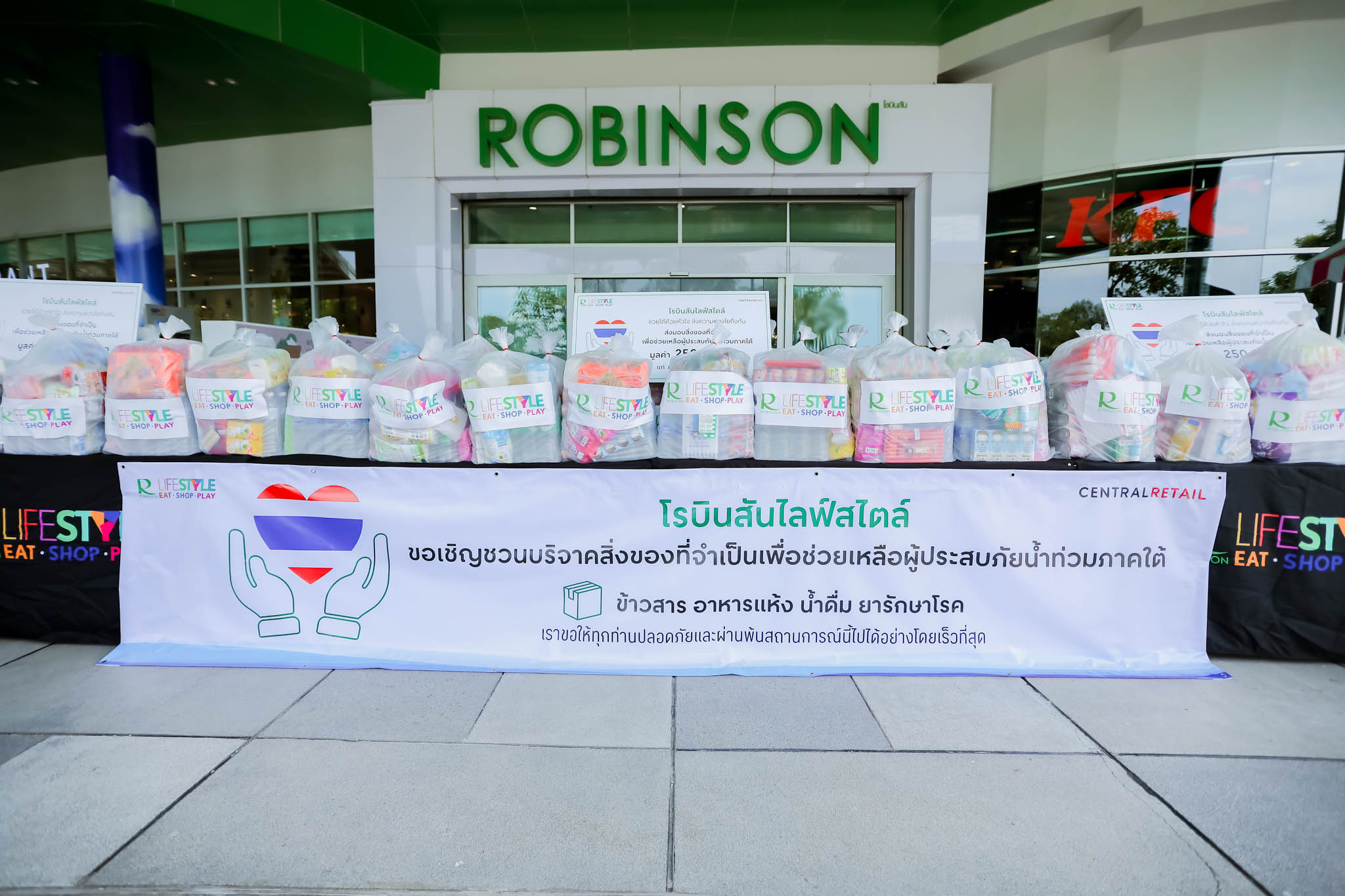 ศูนย์การค้าโรบินสันไลฟ์สไตล์ ในเครือเซ็นทรัล รีเทล เร่งเดินหน้าภารกิจอย่างต่อเนื่องเพื่อช่วยเหลือผู้ประสบอุทกภัยในภาคใต้ โดยร่วมมือกับหน่วยงานภาครัฐ เพื่อส่งต่อความช่วยเหลืออย่างทันท่วงที โดยได้จัดทำถุงยังชีพบรรจุสิ่งของจำเป็นในการดำรงชีวิต และการฟื้นฟูหลังสถานการณ์น้ำท่วม มูลค่ารวมกว่า 500,000 บาท จำนวน 1,000 ถุง เพื่อส่งไปบรรเทาทุกข์ผู้ประสบอุทกภัยภาคใต้