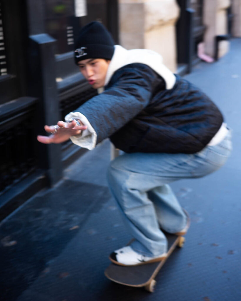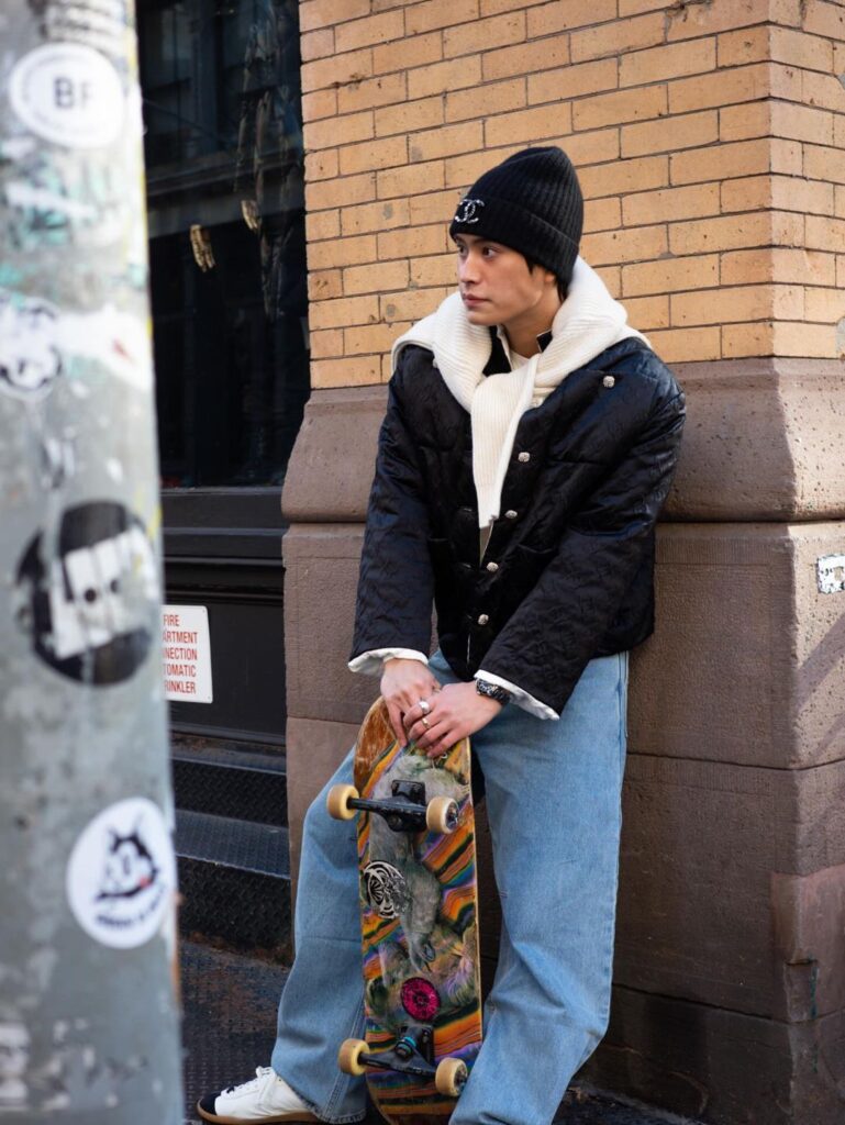โดยภาพชุดนี้มาในคอนเซ็ปต์ ‘สตรีทบอย’ สุดคูล พร้อม “สเก็ตบอร์ด” เป็นพร็อพหลักที่เพิ่มความเท่ให้ทวีคูณ! แม้จะมาในเสื้อผ้าที่ดูเรียบง่าย แต่ความหล่อและอินเนอร์ที่ส่งออกมานั้น “เกินต้านทาน” จนแฟนๆ ต้องยอมยกธงขาวให้กับความเพอร์เฟกต์นี้