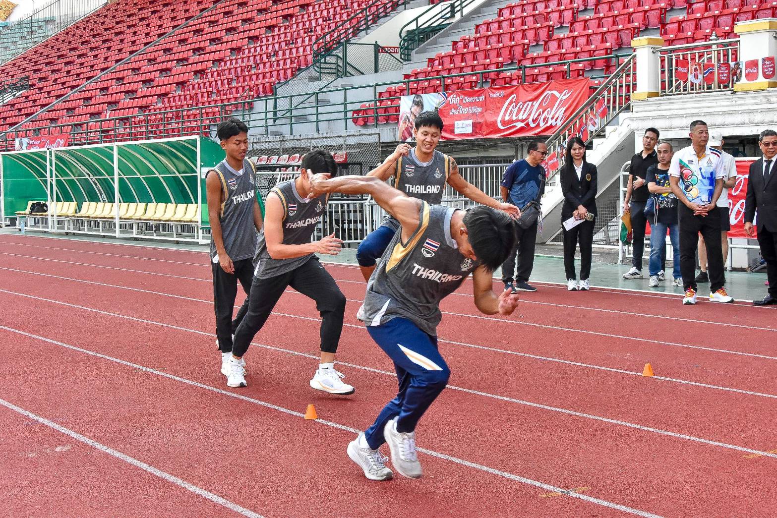 ดร.ณัฏฐ์ ธีรณัฐสุภานนท์ ประธานมูลนิธิกองทุนพัฒนาการกีฬา ยกคณะเยี่ยมชมการฝึกซ้อมและมอบกำลังใจให้ทีมกรีฑาทีมชาติไทย นำโดย บิว-ภูริพล บุญสอน และ ต้า-สรอรรถ ดาบบัง โดยมี โค้ชจี เจนทรี แบรดลีย์ โค้ชระดับโลกจากสหรัฐอเมริกา คอยติว กรีฑายืนยันตั้งเป้าที่ 17 เหรียญทอง