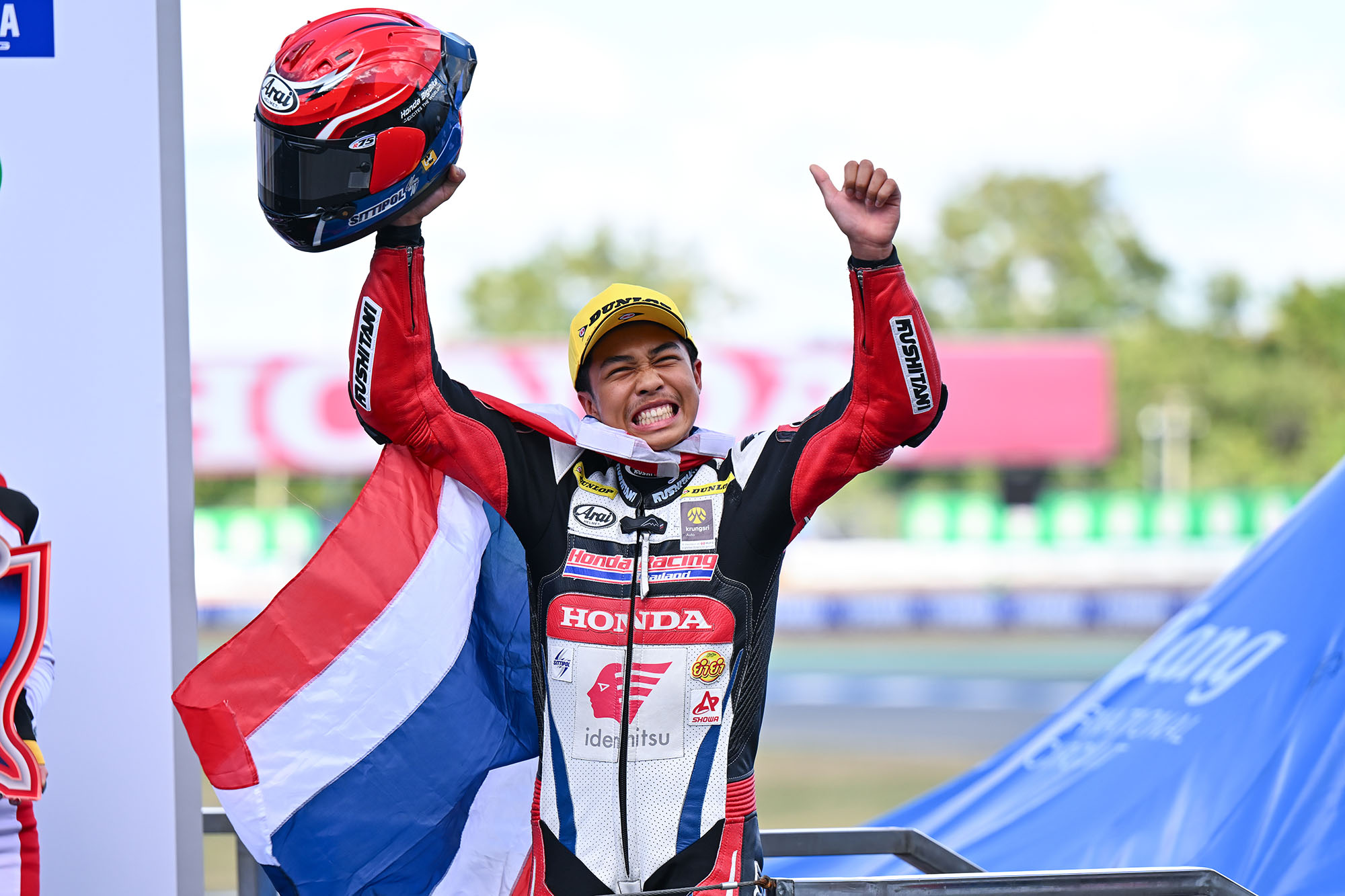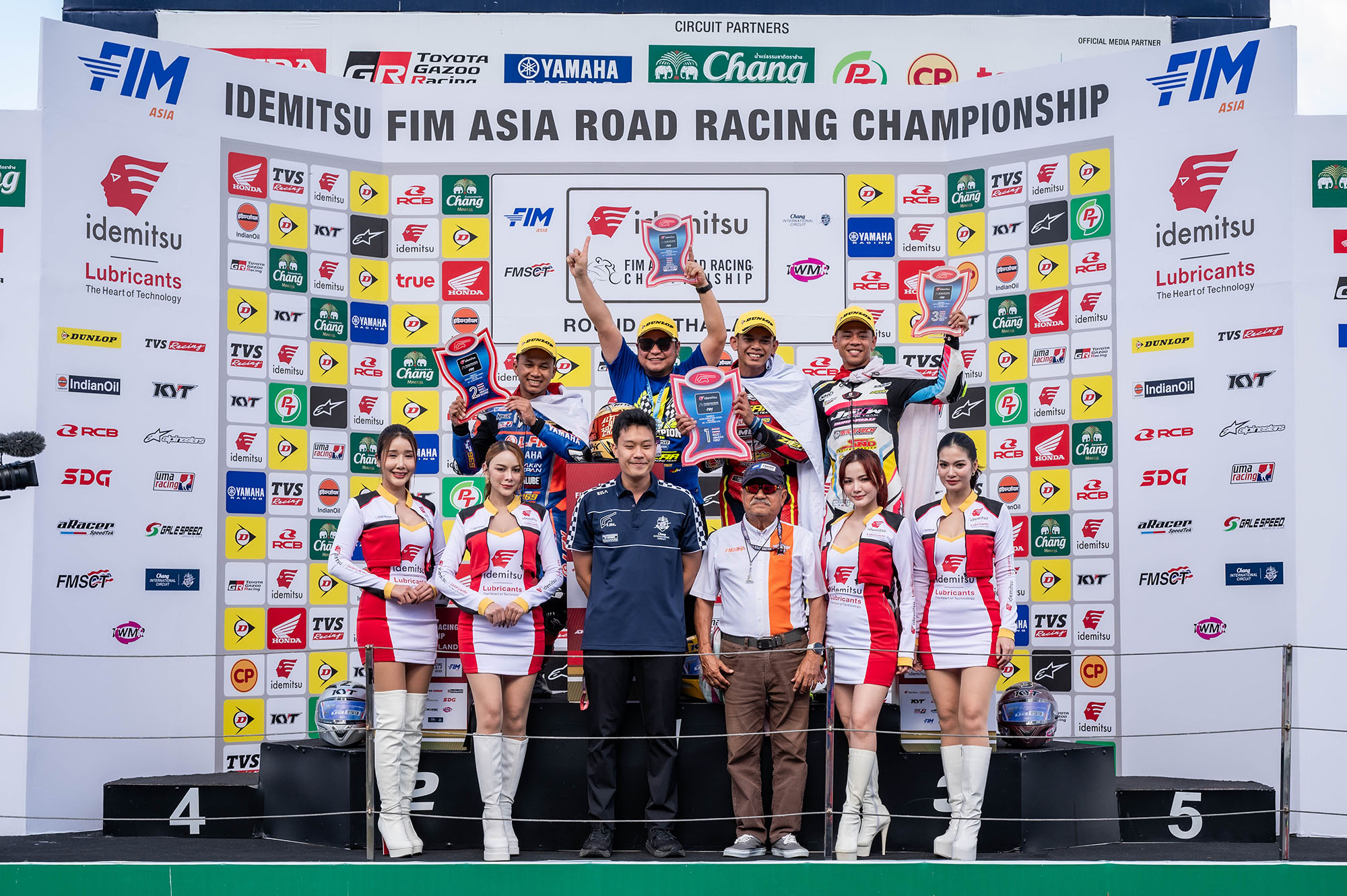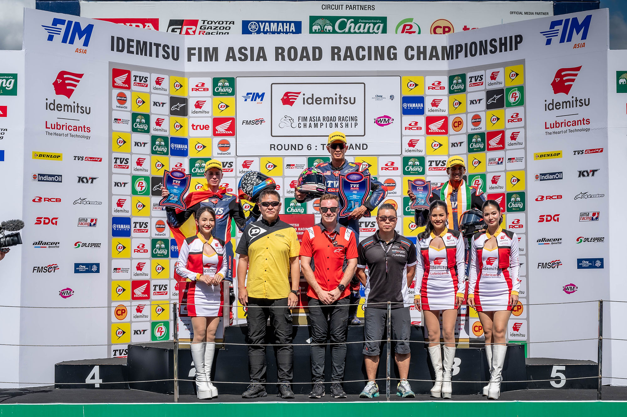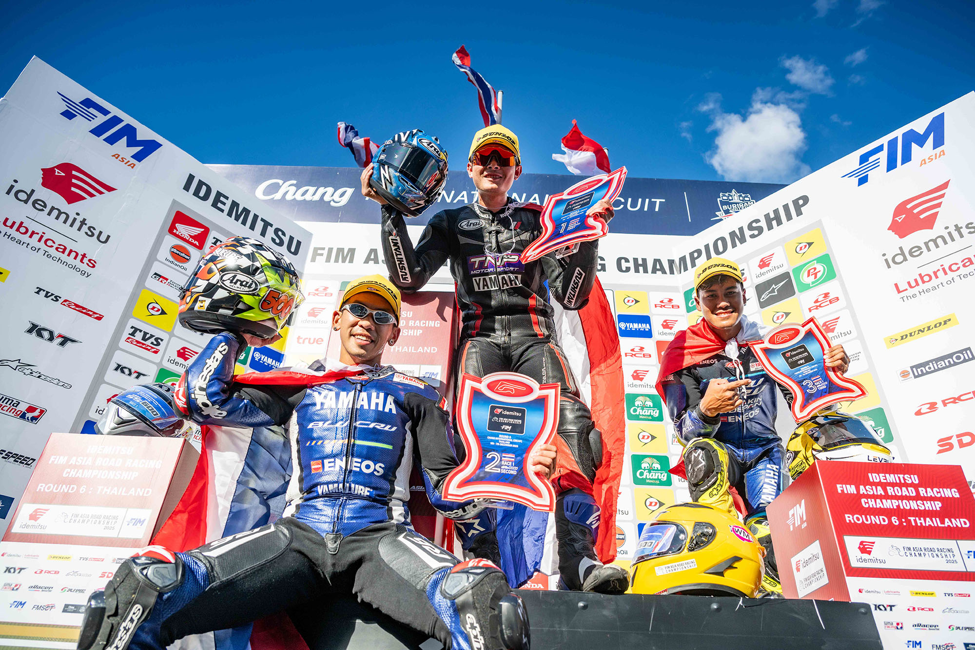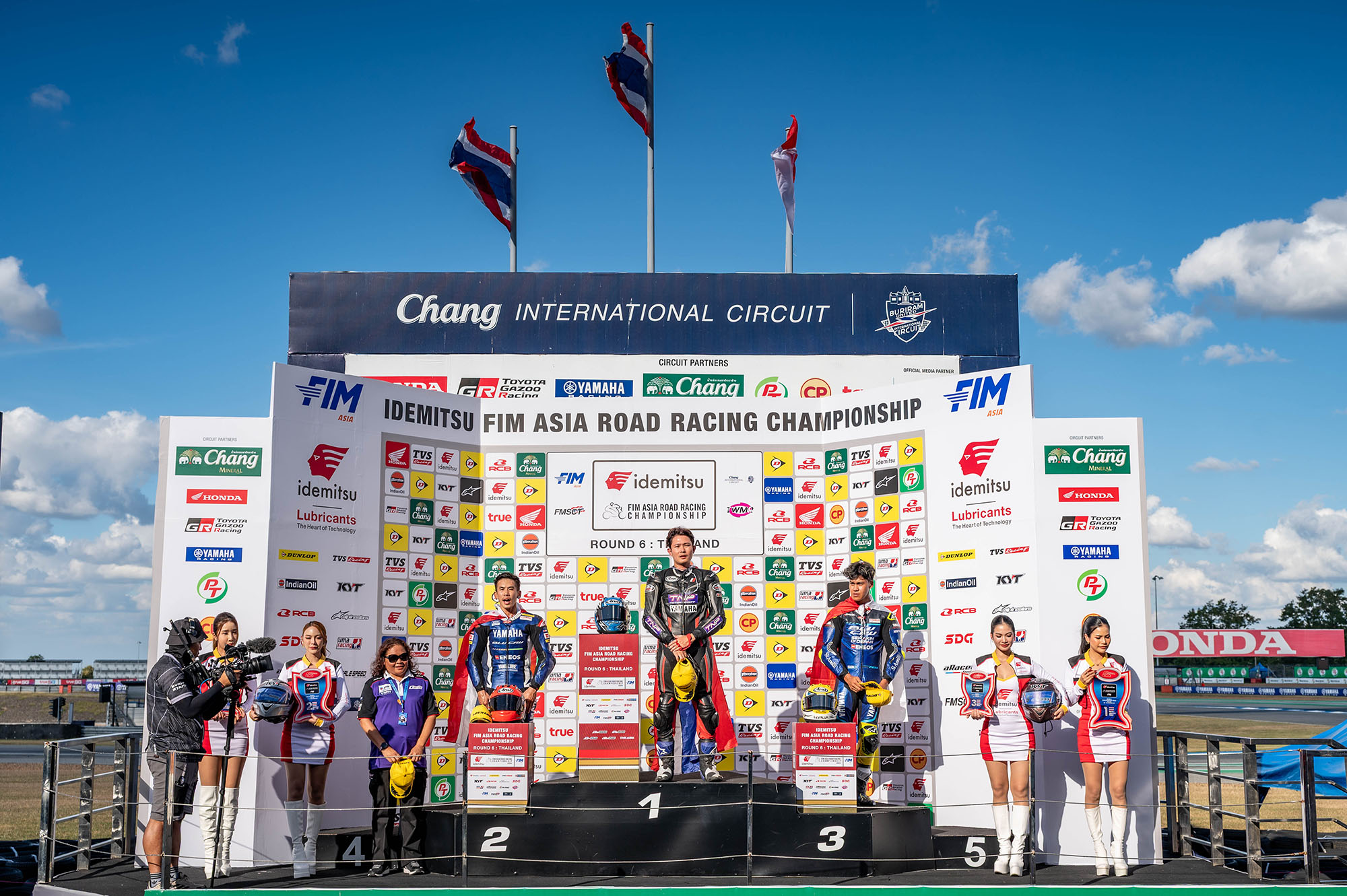 เพลงชาติไทยกระหึ่ม! “แสตมป์” เข้าวิน โฮมเรซ “ตี-ไอเดีย-อุ้ม” พาเหรดกวาดโพเดียม Asia Road Racing Championship