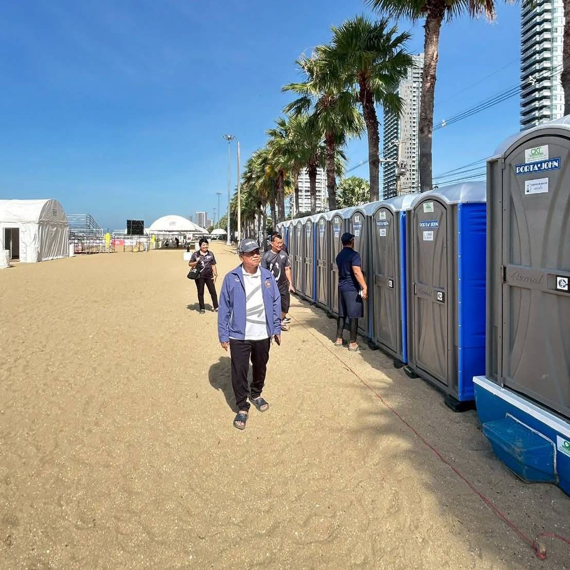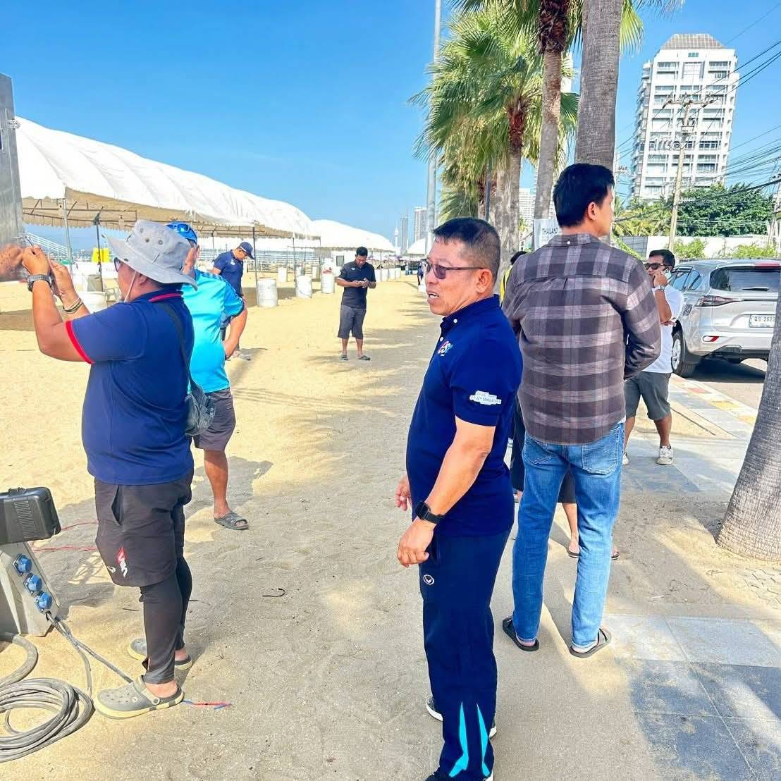 ตรวจสนาม สร้างขวัญกำลังใจ นายสมพร ใช้บางยาง นายกสมาคมกีฬาวอลเลย์บอลแห่งประเทศไทย พร้อมคณะกรรมการสมาคมฯ เดินทางเข้าตรวจความพร้อมสนามจัดการแข่งขันวอลเลย์บอลชายหาด กีฬาซีเกมส์ครั้งที่ 33 ที่ชายหาดจอมเทียน เมืองพัทยา ต.หนองปรือ อ.เมืองบางละมุง จ.ชลบุรี
