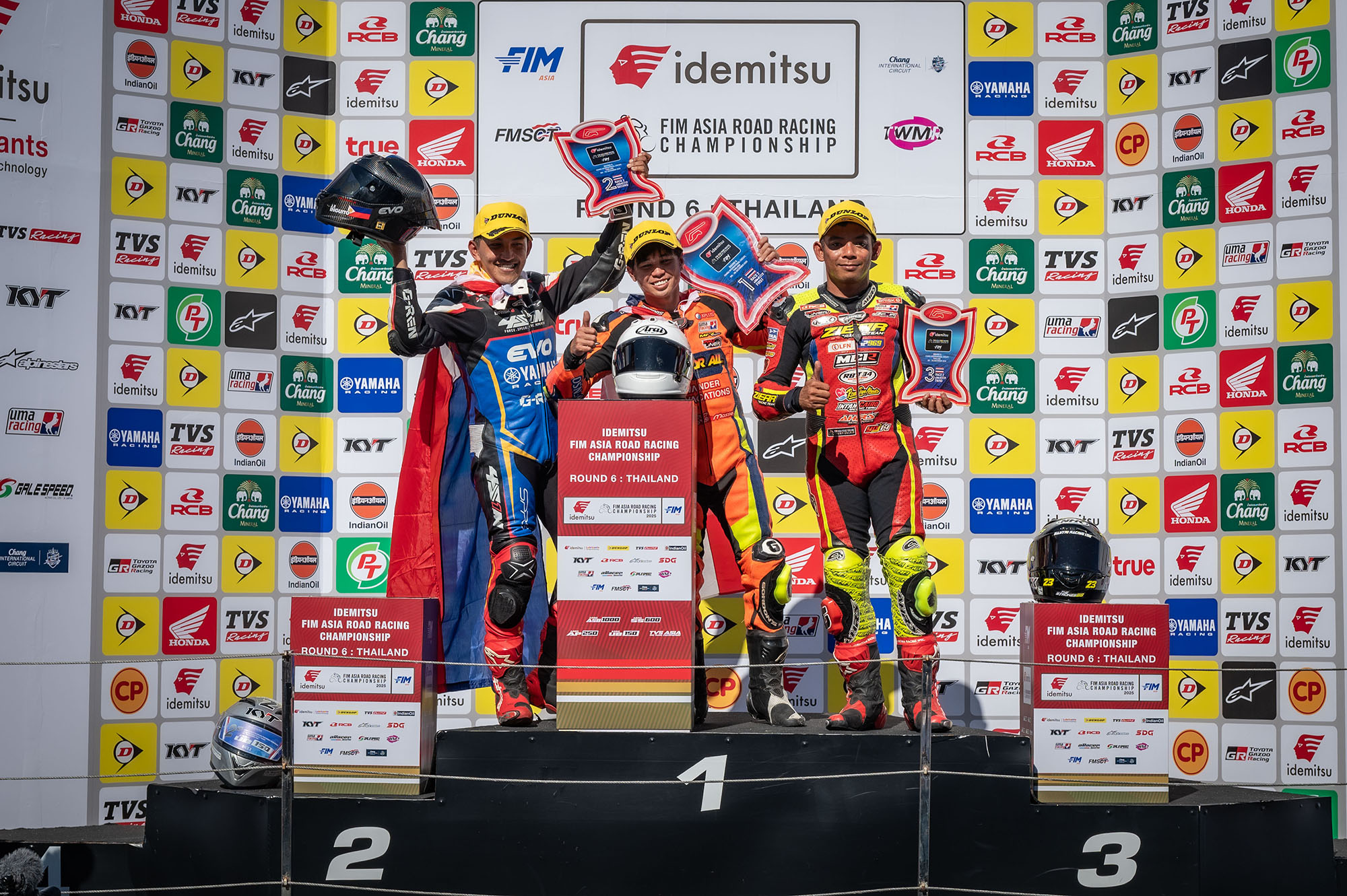 เอเชีย โร้ด เรซซิ่ง สนามสุดท้ายที่ประเทศไทย จบด้วยชัยชนะที่ยิ่งใหญ่ของนักบิดไทยพาเหรดคว้าชัยและขึ้นโพเดียมทุกรุ่น นำโดย “ชิพ” นครินทร์ อธิรัฐภูวภัทร์ ยอดนักบิดไทย จาก ฮอนด้า เรซซิ่ง ไทยแลนด์ นำม้วนเดียวผงาดคว้าแชมป์รุ่นใหญ่ไปครอง ส่วน”มิกซ์” ธนัช ละอองปลิว ฮอนด้า เรซซิ่ง ไทยแลนด์ คว้าแชมป์ในรุ่น ซูเปอร์สปอร์ต 600 ซีซี , “ไอเดีย” กฤตภัทร เขื่อนคำ จาก ยามาฮ่า ไทยแลนด์ เรซซิ่ง ทีม คว้าแชมป์ในรุ่น เอเชีย โปรดักชั่น 250 ซีซี , และ “เติ้ล” พีระพงษ์ หลุยบุญเป็ง จาก วัน ฟอร์ ออลล์ แซงเดือด 11 คันรอบสุดท้ายซิวแชมป์รุ่น อันเดอร์โบน 150 ซีซี เพลงชาติไทยดังกึกก้องในทุกโพเดียม สร้างประวัติศาสต์หน้าใหม่ให้สองล้อไทยที่สามารถคว้าชัยชนะทุกรุ่นการแข่งขันในรอบ 11 ปี ที่จัดในประเทศไทย