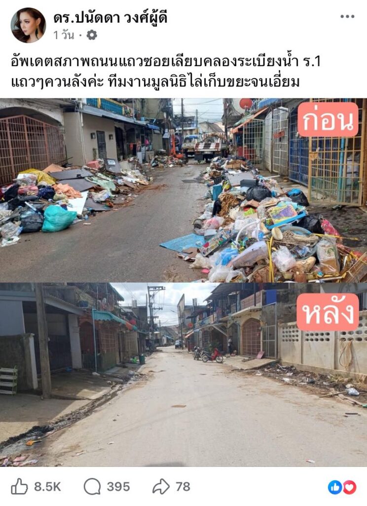ล่าสุดก็มีเรื่องให้ “บุ๋ม ปนัดดา” ต้องปวดหัวเมื่อเธอออกมาโพสต์ข้อความผ่านเฟสบุ๊กส่วนตัวว่า “เมื่อวานทีมงานมูลนิธิของเธอเข้าไปจัดการกองขยะมหาศาลใน ซอยเลียบคลองระเบียงน้ำ ร.1หลังสถานการณ์น้ำท่วมคลี่คลาย แต่กลับเจอเหตุการณ์ไม่คาดคิดเนื่องจากถูกชาวบ้านโวยวาย เบิ้ลรถใส่ ตะโกนด่า เพราะหน่วยงานปิดถนนเพื่อเคลียร์ขยะ ทำให้ชาวบ้านไม่สามารถนำรถเข้าบ้านได้” ท่ามกลางชาวเน้ตเข้ามาส่งกำลังใจให้เป็นจำนวนมาก