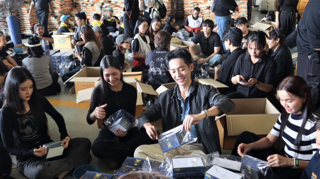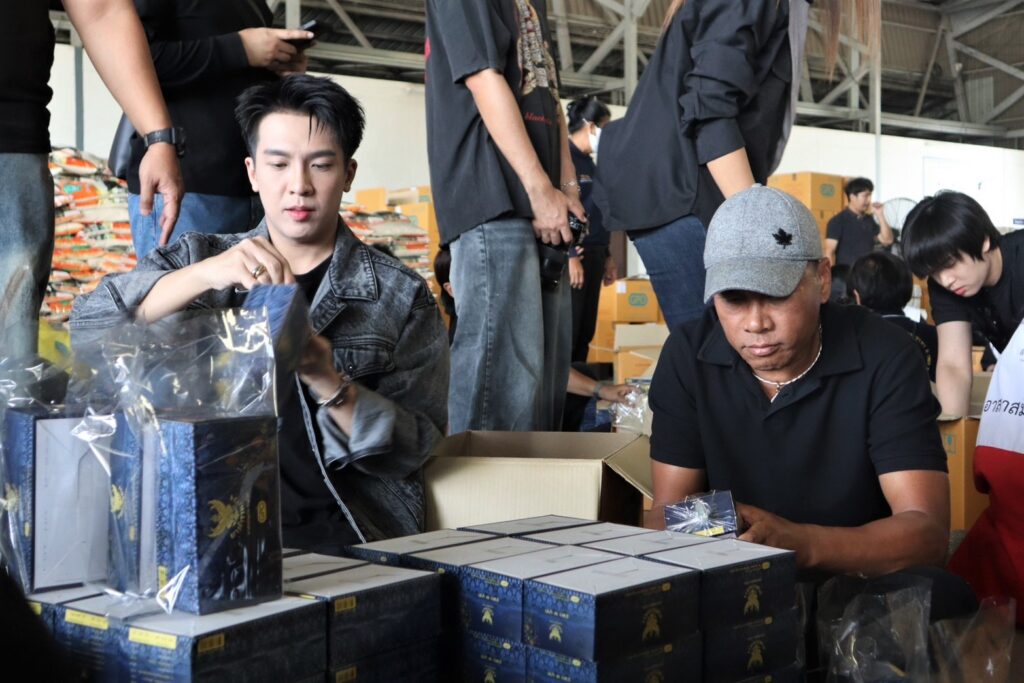 บรรยากาศเต็มไปด้วยความตั้งใจของทุกคน ที่ช่วยกันบรรจุถุงยังชีพพระราชทาน เพื่อนำไปช่วยเหลือพี่น้องที่ได้รับผลกระทบ ซึ่ง ไมค์ ภิรมย์พร ได้นำน้ำปลาร้า น้ำพริกป่นปลานิลฟรีซดราย และ ไผ่ พงศธร นำผลิตภัณฑ์กาแฟสำเร็จรูป เซรั่ม และครีมกันแดดมาร่วมส่งให้กับพี่น้องชาวใต้ด้วย นอกจากนี้ ยังมีอาสาสมัครจากหลายหน่วยงานที่มาร่วมบรรจุถุงยังชีพพระราชทานในครั้งนี้ ทำให้บรรยากาศเต็มไปด้วยพลังบวกที่ศิลปิน นักแสดง และอาสาสมัครมาร่วมแรงร่วมใจกันในวันนี้