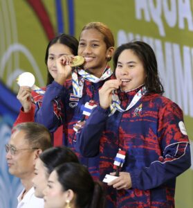 “หลังจากจบซีเกมส์ทางสมาคมก็จะทำการเตรียมเอเชียนเกมส์ 2026 ต่อทันที ตอนนี้มี โปโลน้ำทีมชายและทีมหญิง รวมถึง ว่ายน้ำลีลา ได้ผ่านคลอลิฟายเข้าร่วมเอเชียนเกมส์แน่นอนแล้ว ส่วนว่ายน้ำต้องขอดูสถิติอีกครั้ง และ กระโดดน้ำต้องลุ้นกันยาวๆ” นายธนาวิชญ์ กล่าว