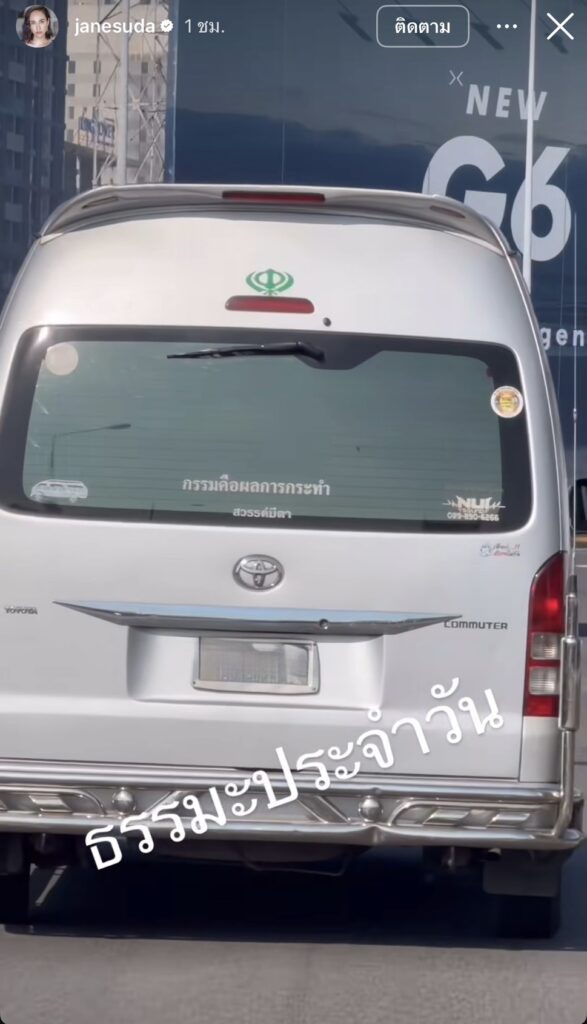 ล่าสุดมาอีกแล้วเรียกว่าไม่พักฟาดเลยนะจ๊ะ เมื่อทางด้าน ”เจนสุดา“ ออกมาโพสต์ภาพคลิปวิดีโอสั้นๆลงในไอจีสตอรี่ ขณะที่เจ้าตัวนั่งอยู่บนรถ และรถคันหน้าเป็นรถตู้ที่เขียนว่า “กรรมคือผลการกระทำ” พร้อมเขียนแคปชั่นเพิ่มเติมว่า “ธรรมะประจำวัน” ท่ามกลางชาวเน็ตเข้ากดไลค์ไว้ให้แบบรัวๆ