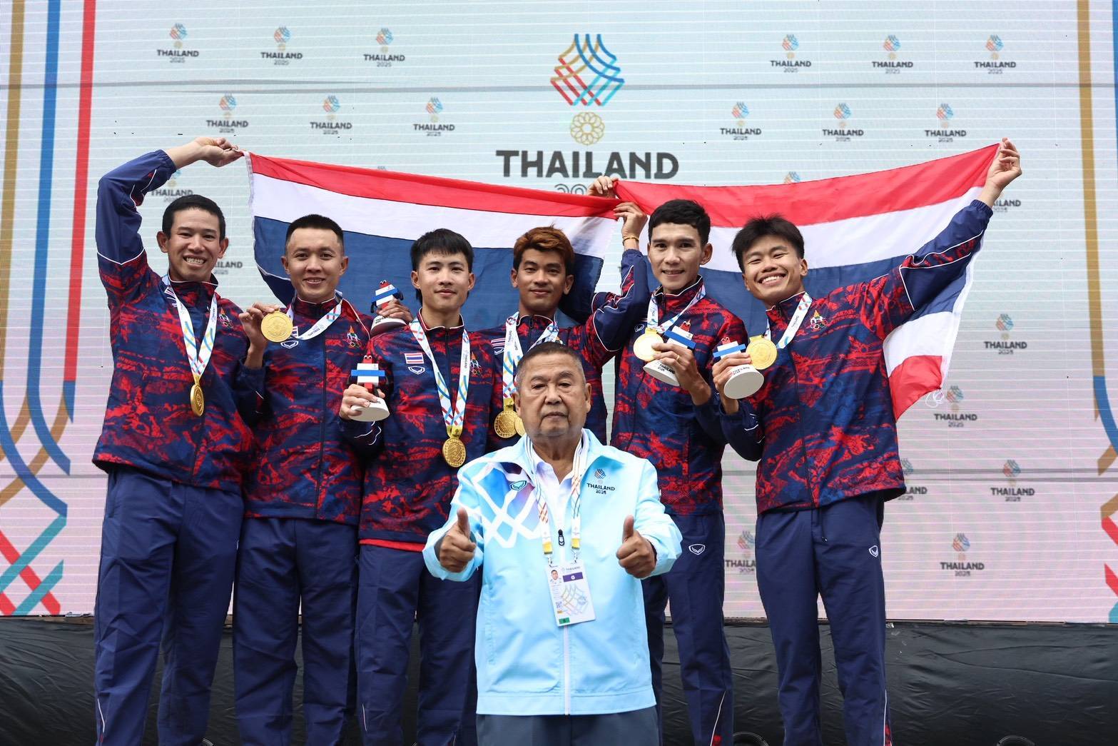“สราวุฒิ สิริรณชัย” สู้อย่างสุดหัวใจคว้าเหรียญทองโรดเรซบุคคลชายมาครอง นับเป็นเหรียญที่ 7 ของทัพจักรยานไทย พร้อมกับพาเพื่อนร่วมทีมคว้าเหรียญทองประเภททีมได้อีกเป็นเหรียญทองที่ 8 ในการแข่งขันจักรยานกีฬาซีเกมส์ ครั้งที่ 33 ด้าน “เสธ.หมึก” เผยผลงานนักปั่นไทยทะลุเป้าโกยไปแล้ว 8 เหรียญทอง 4 เหรียญเงิน 2 เหรียญทองแดง ยังได้ลุ้นจากโรดเรซบุคคลหญิงอีก 1 เหรียญทอง และประเภทลู่อีก 5 เหรียญทอง