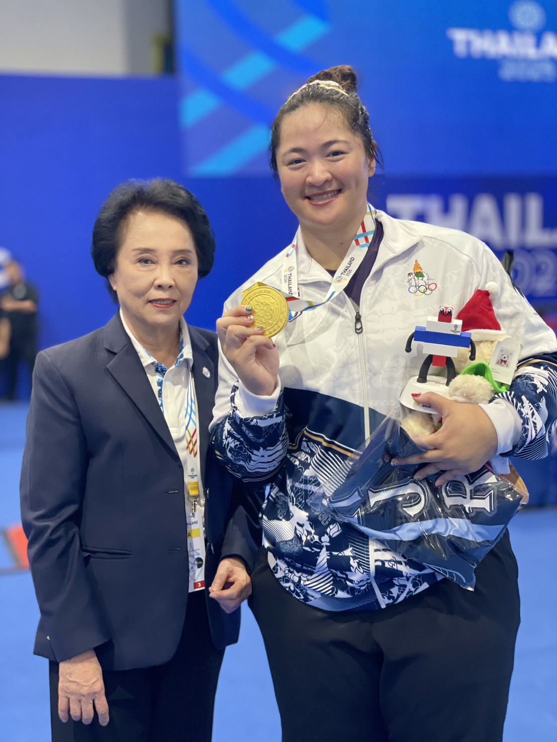การแข่งขันกีฬายกน้ำหนัก มหกรรมกีฬาซีเกมส์ ครั้งที่ 33 ที่โรงยิมเนเซียม โรงเรียนกีฬาจังหวัดชลบุรี ล่าสุดวันที่ 17 ธันวาคม 2568 ชิงชัยวันที่ห้า (วันสุดท้าย) ชิง 3 เหรียญทอง ในการนี้ พลตรีหญิง ท่านผู้หญิงอรอนงค์ ปิยนาฏวชิรพัทธ์ ประธานกรรมการที่ปรึกษา โครงการส่งเสริมการกีฬาเพื่อพัฒนาชาติไทย ในพระบรมราชูปถัมภ์ เป็นประธานมอบเหรียญรางวัลในรุ่น 77 กิโลกรัม หญิง และรุ่นมากกว่า 77 กิโลกรัม หญิง
