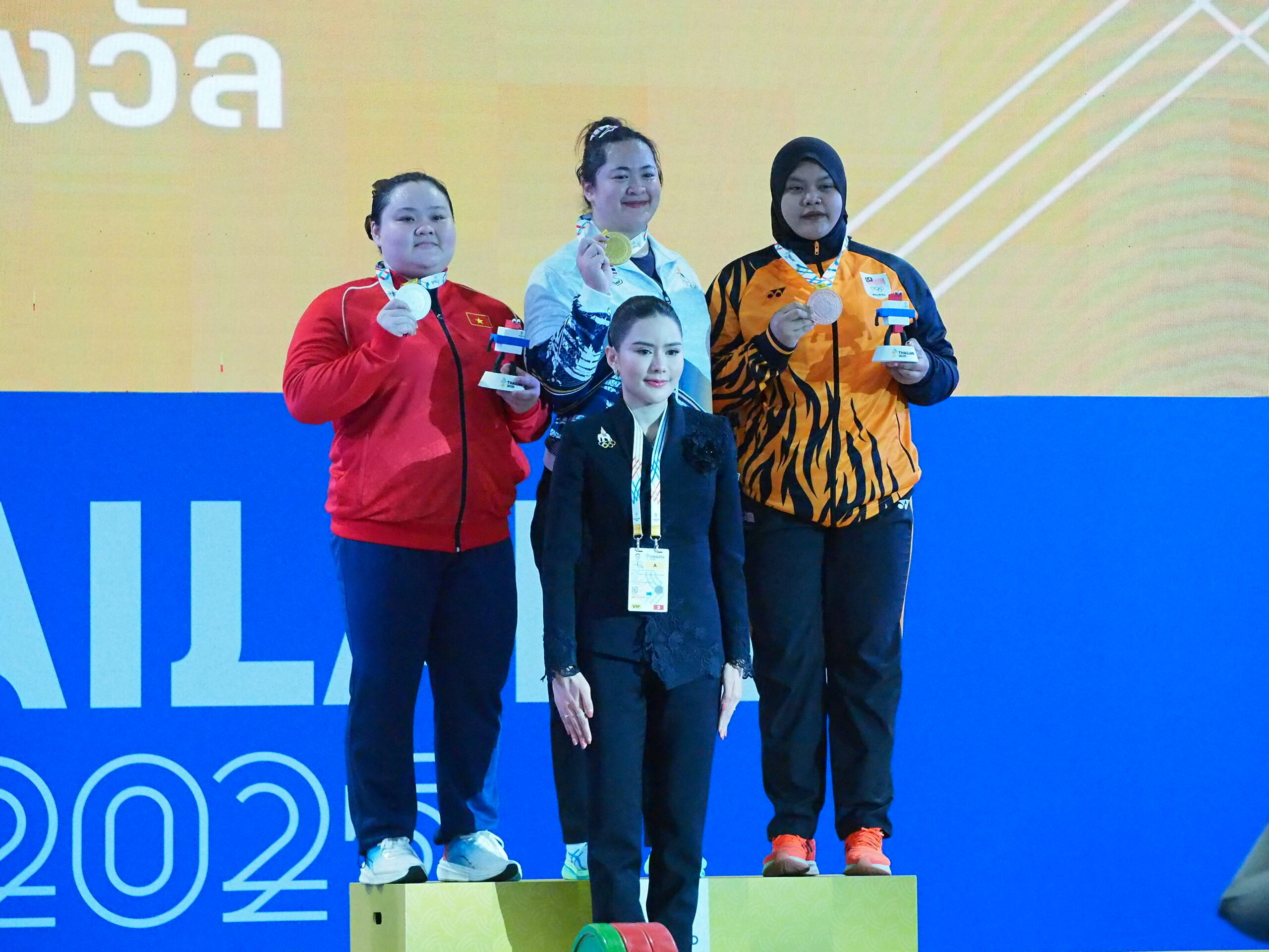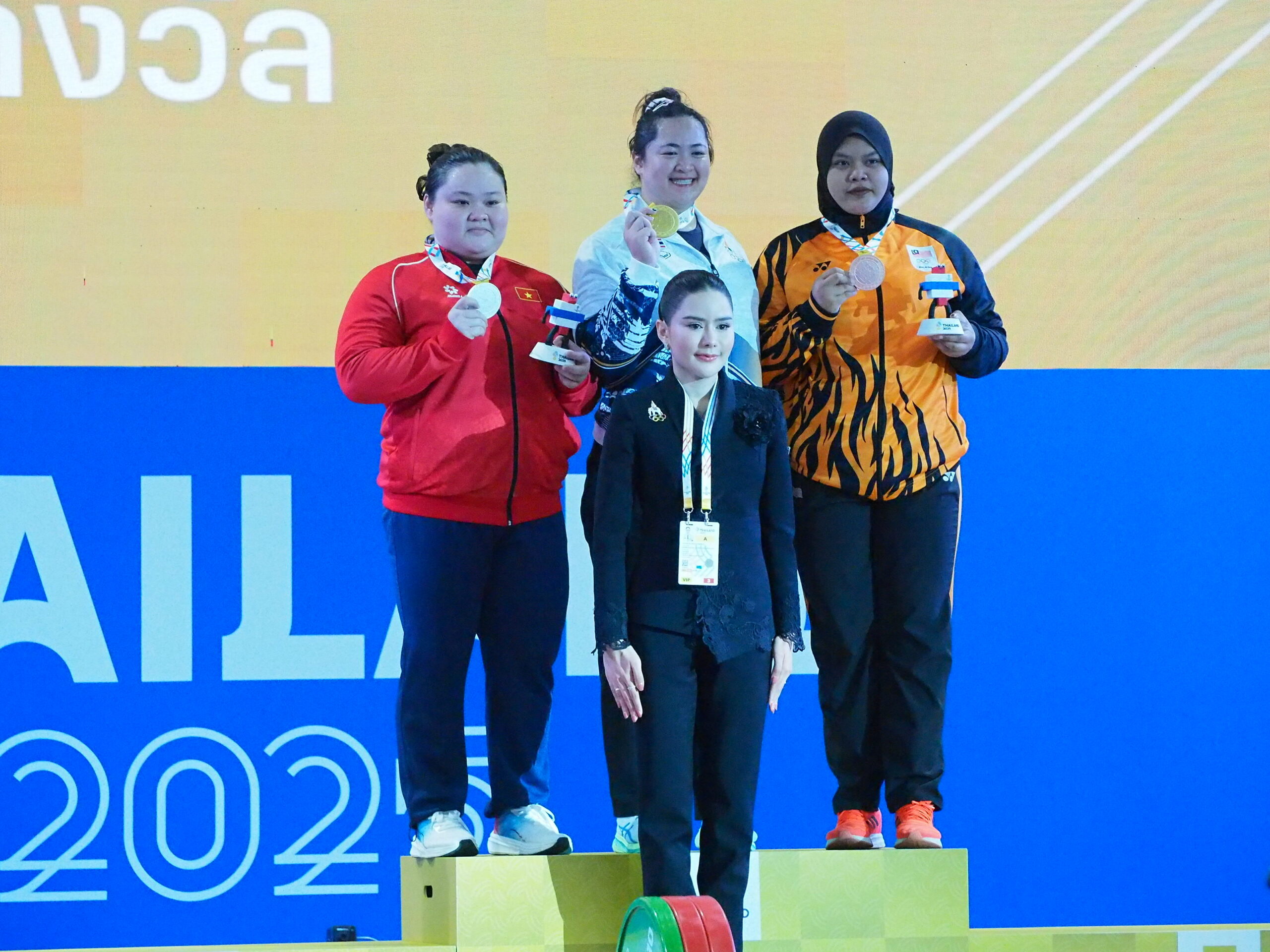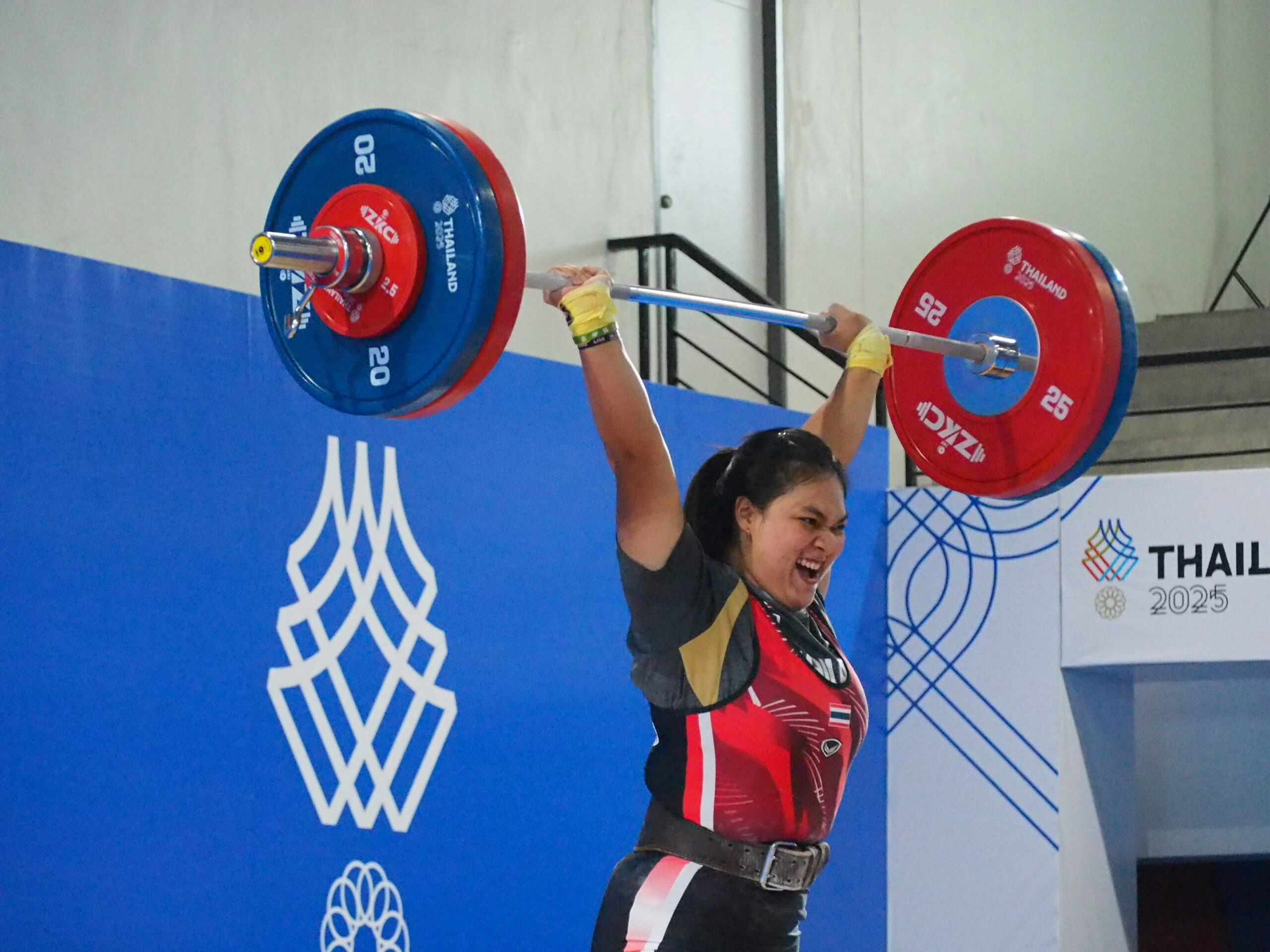 การแข่งขันกีฬายกน้ำหนัก มหกรรมกีฬาซีเกมส์ ครั้งที่ 33 ที่โรงยิมเนเซียม โรงเรียนกีฬาจังหวัดชลบุรี ล่าสุดวันที่ 17 ธันวาคม 2568 ชิงชัยวันที่ห้า (วันสุดท้าย) ชิง 3 เหรียญทอง ในการนี้ พลตรีหญิง ท่านผู้หญิงอรอนงค์ ปิยนาฏวชิรพัทธ์ ประธานกรรมการที่ปรึกษา โครงการส่งเสริมการกีฬาเพื่อพัฒนาชาติไทย ในพระบรมราชูปถัมภ์ เป็นประธานมอบเหรียญรางวัลในรุ่น 77 กิโลกรัม หญิง และรุ่นมากกว่า 77 กิโลกรัม หญิง