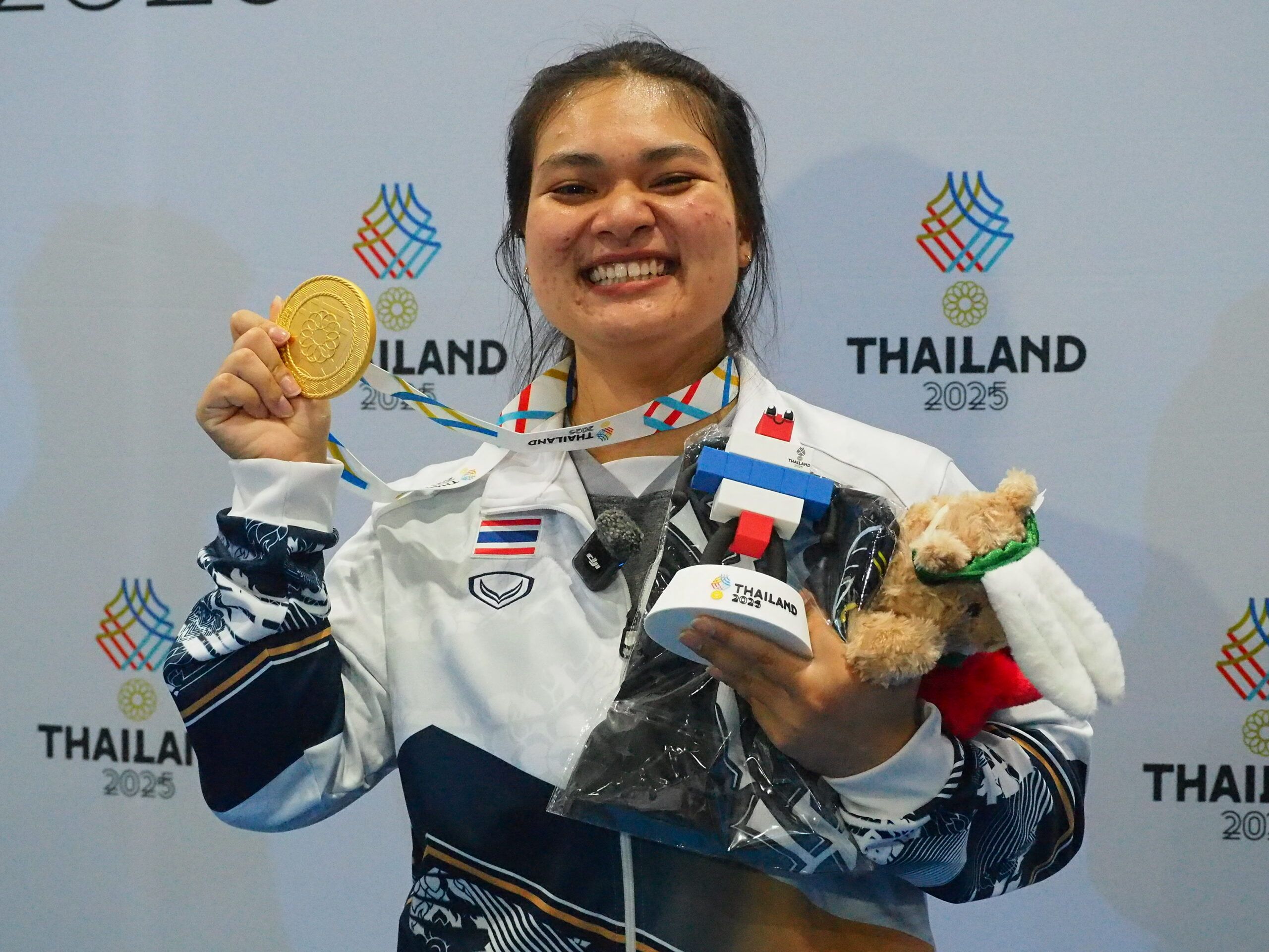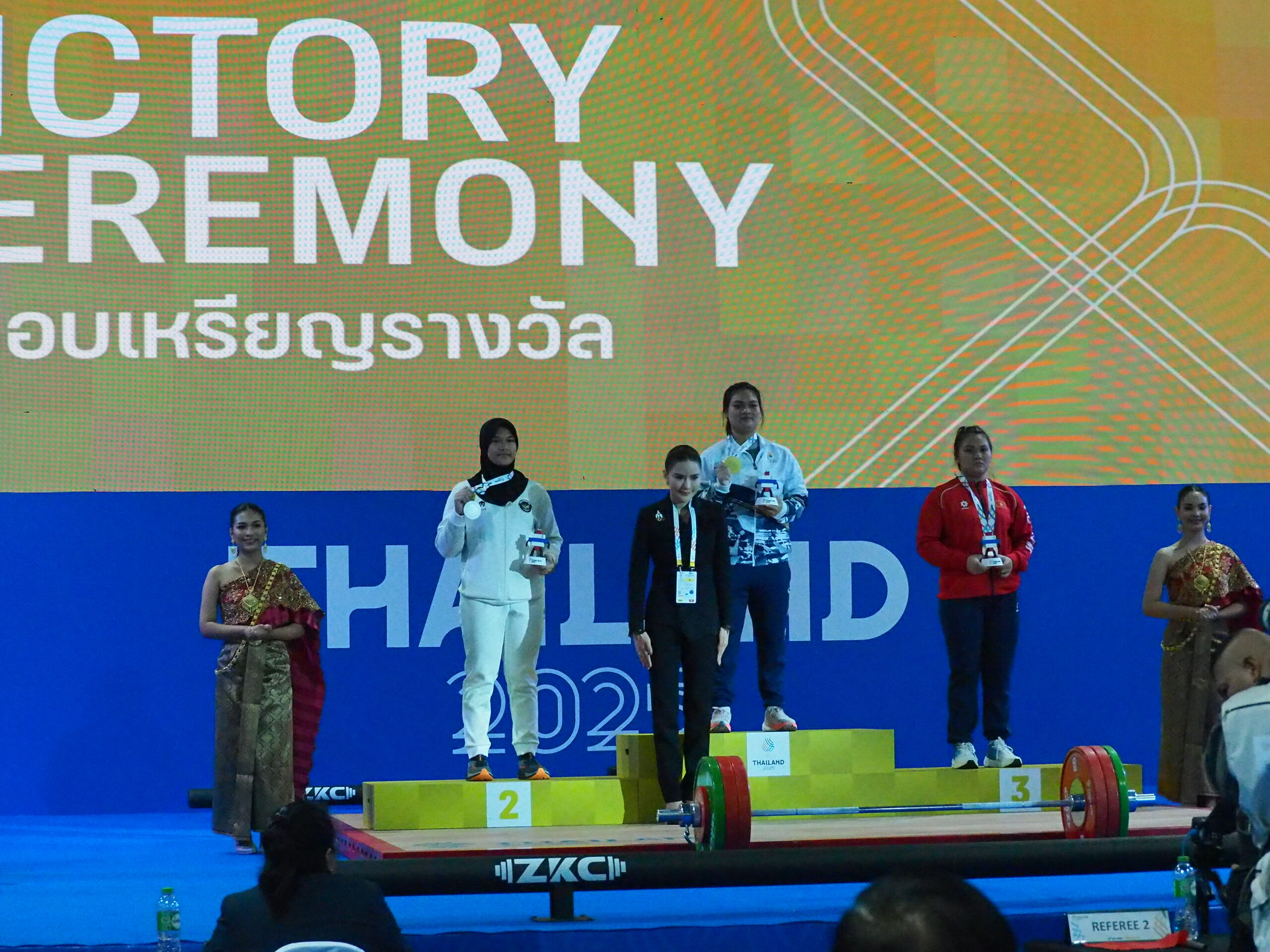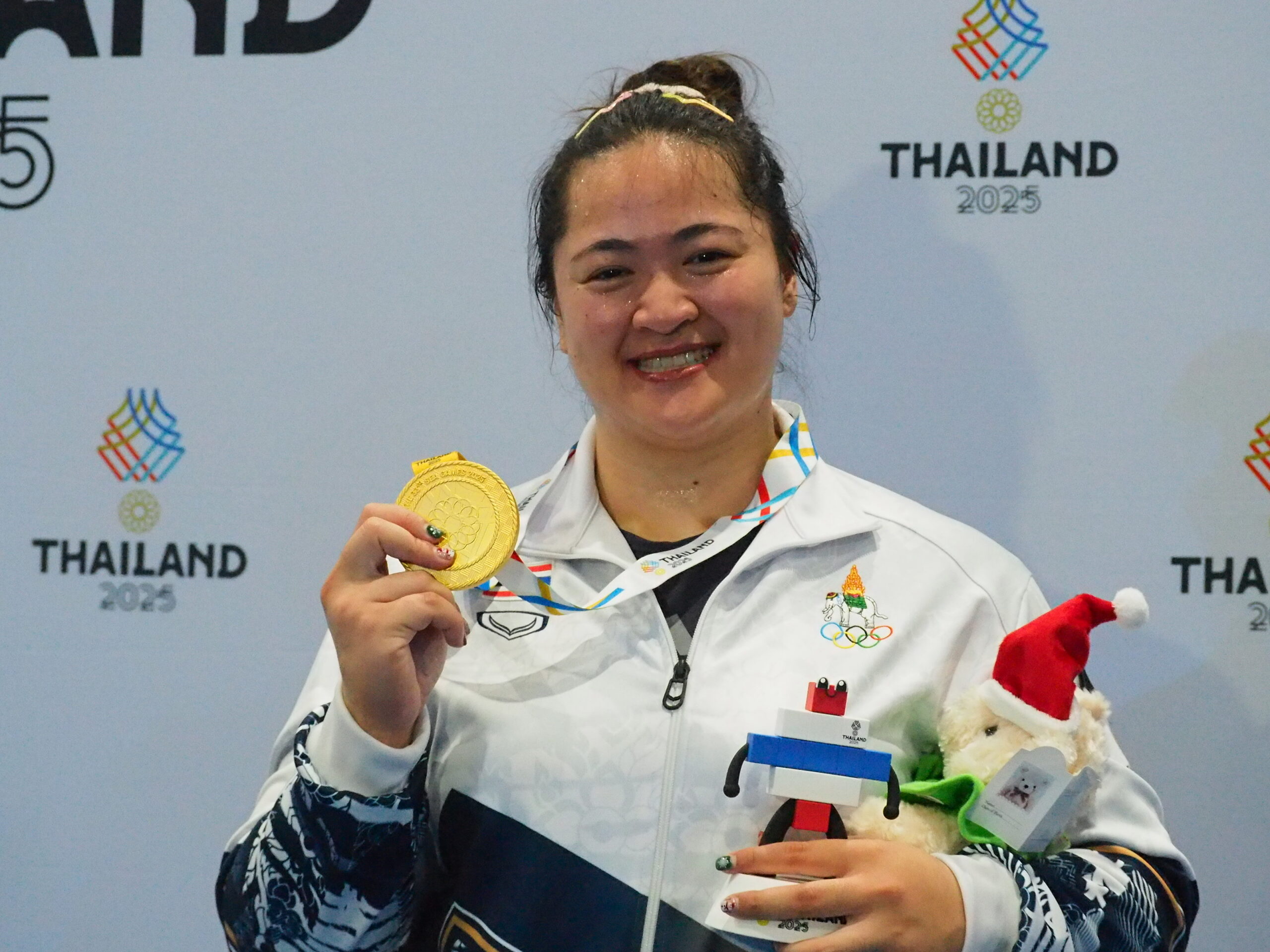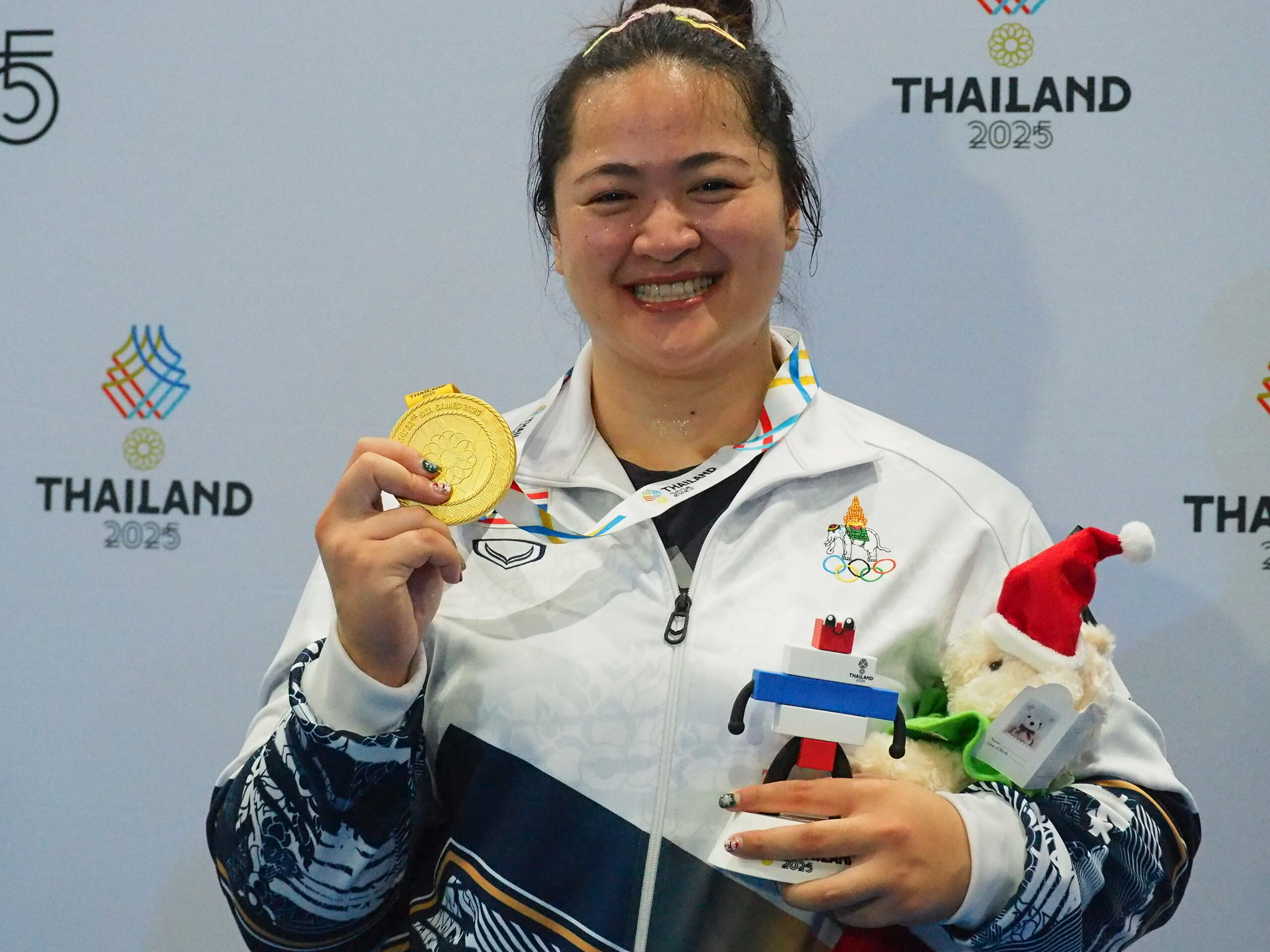 การแข่งขันกีฬายกน้ำหนัก มหกรรมกีฬาซีเกมส์ ครั้งที่ 33 ที่โรงยิมเนเซียม โรงเรียนกีฬาจังหวัดชลบุรี ล่าสุดวันที่ 17 ธันวาคม 2568 ชิงชัยวันที่ห้า (วันสุดท้าย) ชิง 3 เหรียญทอง ในการนี้ พลตรีหญิง ท่านผู้หญิงอรอนงค์ ปิยนาฏวชิรพัทธ์ ประธานกรรมการที่ปรึกษา โครงการส่งเสริมการกีฬาเพื่อพัฒนาชาติไทย ในพระบรมราชูปถัมภ์ เป็นประธานมอบเหรียญรางวัลในรุ่น 77 กิโลกรัม หญิง และรุ่นมากกว่า 77 กิโลกรัม หญิง