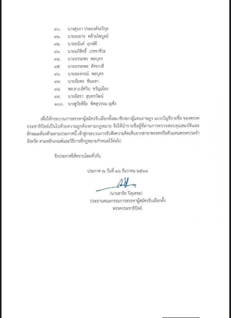 ทั้งนี้ เป็นที่น่าสังเกตว่าไม่ปรากฏชื่อ นายบัญญัติ บรรทัดฐาน อดีตหัวหน้าพรรคฯ ซึ่งถือเป็นแกนนำพรรคฯ คนสำคัญ ที่ประกาศตัวเองว่า จะไม่ขอลงสมัครรับเลือกตั้ง