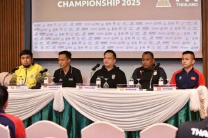 วันที่ 22 ธันวาคม 2568 เวลา 15.30 น. ณ ห้อง ประชุม โรงแรม อัลมีรอซ ฝ่ายจัดการแข่งขันสหพันธ์ฟุตบอลอาเซียน จัดงานแถลงข่าวก่อนการแข่งขันฟุตซอลชิงแชมป์อาเซียน รุ่นอายุไม่เกิน 16 ปี (ASEAN U16 Boys Futsal Championship 2025) ระหว่างวันที่ 23-28 ธันวาคม 2568 ณ สนามยิมเนเซี่ยม สนามกีฬากลาง จังหวัดนนทบุรี