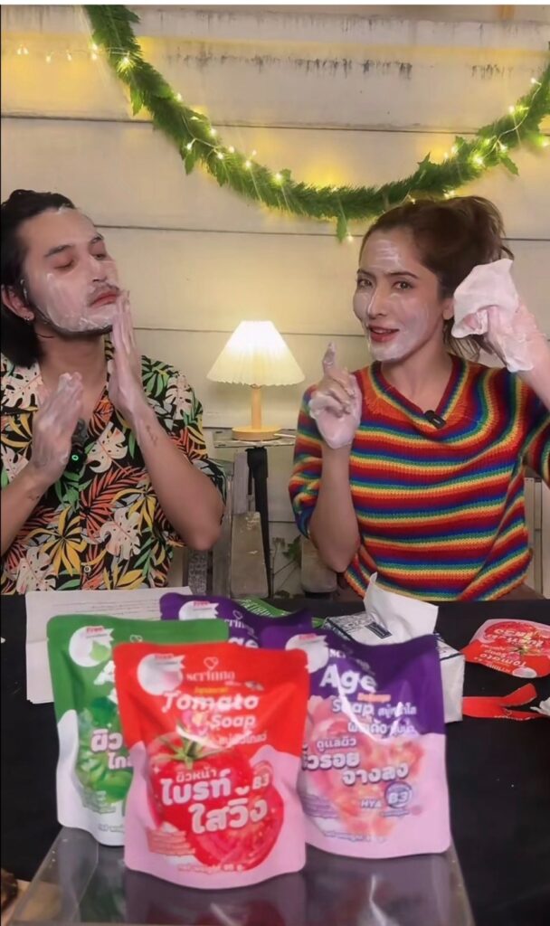 โดยเฉพาะ กลิ่นหอม และฟองที่นุ่มละมุน กลายเป็นจุดเด่นที่ผู้ชมไลฟ์ให้ความสนใจและตัดสินใจสั่งซื้อทันทีในด้านผลิตภัณฑ์ เซรินนะชูสบู่ดูแลผิว 3 สูตรหลัก ได้แก่ สูตรเขียว สำหรับดูแลปัญหาสิว สูตรแดง เพื่อผิวดูกระจ่างใส สูตรม่วง เพื่อผิวกระฝ้า ดูสุขภาพดี ทุกสูตรจำหน่ายในราคาเข้าถึงง่าย ก้อนละ 59 บาท เหมาะทั้งการใช้ในชีวิตประจำวันและการมอบเป็นของขวัญ