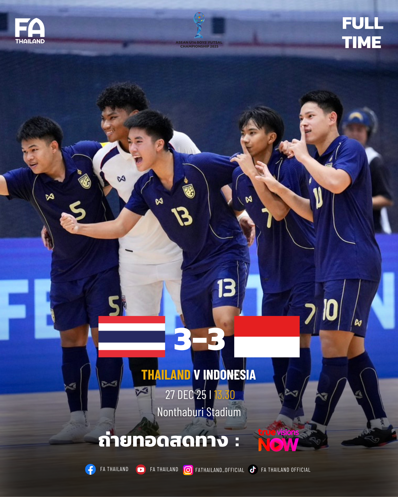 ฟุตซอลไทย U16 เสมอ อินโดนีเซีย U16 3-3 ก่อนเตรียมรีแมตช์ในรอบชิงฯ ศึกชิงแชมป์อาเซียน 2025