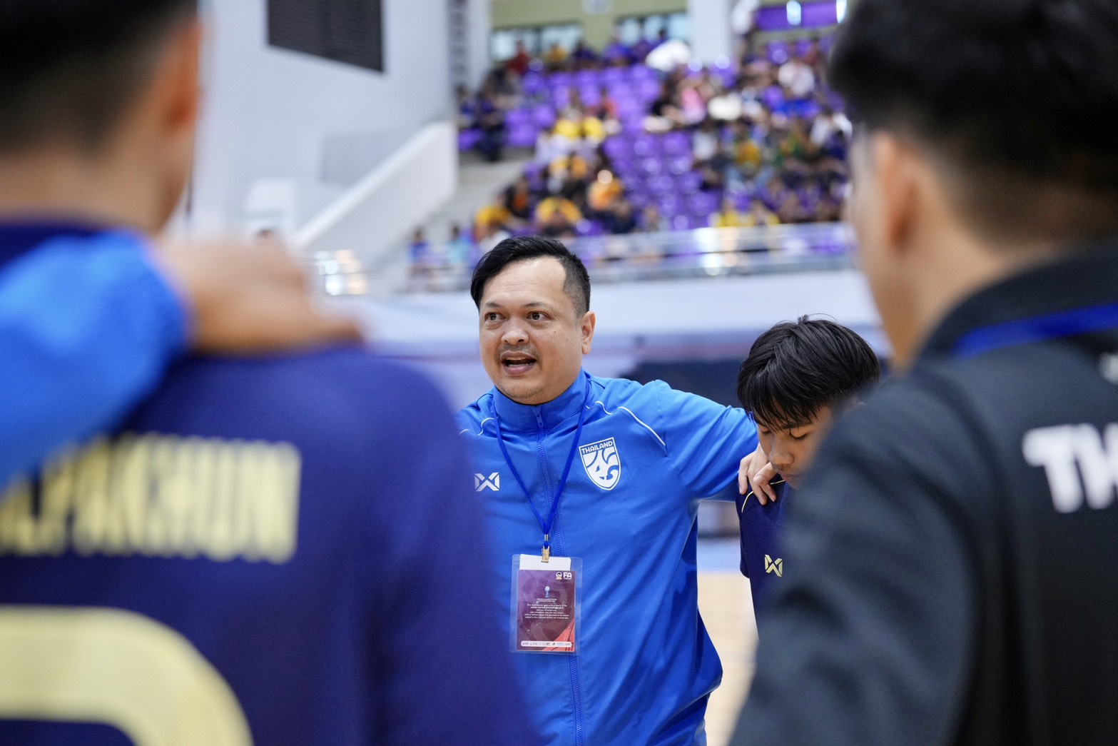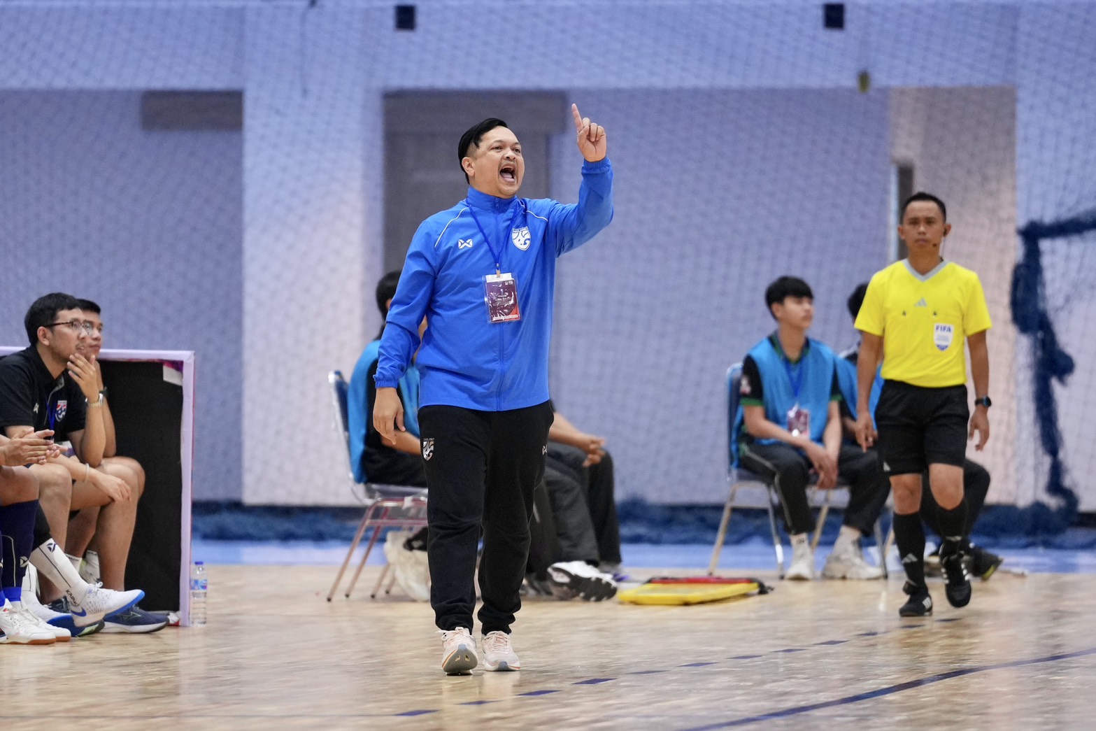 ภัฎ ศรีวิจิตร หัวหน้าผู้ฝึกสอน ฟุตซอลชายทีมชาติไทยรุ่นอายุไม่เกิน 16 ปี ให้สัมภาษณ์หลังการแข่งขันฟุตซอลชิงแชมป์อาเซียน รุ่นอายุไม่เกิน 16 ปี 2025 นัดที่สี่