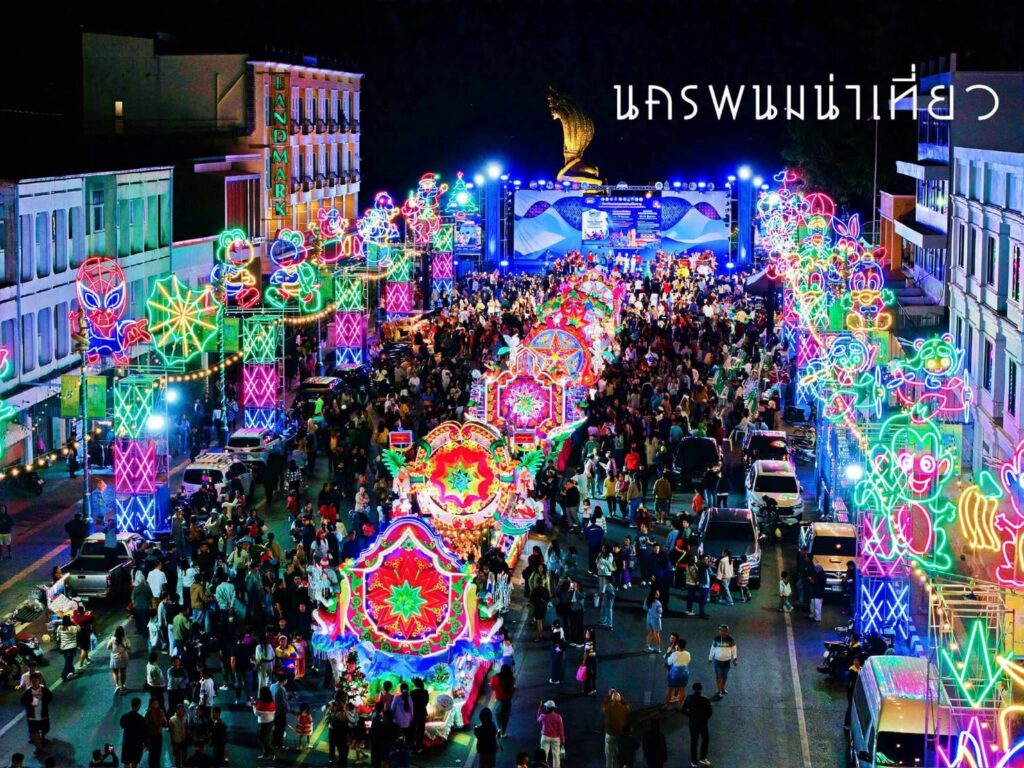 เตรียมพร้อมกับความตระการตากับจุดเช็คอินไฟประดับสวยงามบนถนนริมโขงเรืองแสง เพลิดเพลินกับอุโมงค์ไฟดาวล้านดวงริมฝั่งโขง ที่จะพาทุกท่านได้ไปถ่ายรูป ชมไฟที่ถูกประดับตกแต่งอย่างสวยงาม บริเวณริมเขื่อนถนนสุนทรวิจิตร และ บริเวณถนนนิตโย โดยภายในงานสนุกสานกับกิจกรรม ชิม ช้อป แชร์ กับการจำหน่ายสินค้า กิจกรรมการแสดงมหกรรมดนตรีคอนเสิร์ตจากศิลปินชื่อดังอีกมากมาย