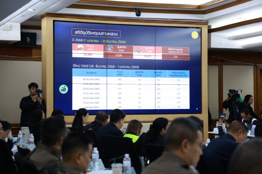 นายจิระพงศ์ เทพพิทักษ์ รองปลัดกระทรวงคมนาคม แถลงสถิติการเกิดอุบัติเหตุทางถนนช่วงเทศกาลปีใหม่ 2569 ประจำวันที่ 1 มกราคม ซึ่งเป็นวันที่สามของการรณรงค์ “ขับขี่ปลอดภัย ลดความเร็ว ลดอุบัติเหตุ” ปรากฏว่า เกิดอุบัติเหตุ 326 ครั้ง ผู้บาดเจ็บ 317 คน ผู้เสียชีวิต 54 ราย
