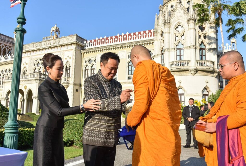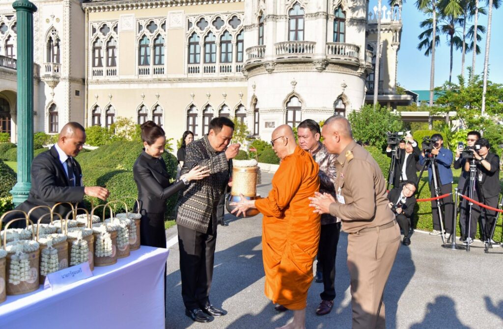นายกฯ-ภริยา นำ ครม.ทำบุญตักบาตรพระสงฆ์ 69 รูป รับปีใหม่ 2569 พร้อมสักการะสิ่งศักดิ์สิทธิ์ทำเนียบ ขอประชาชนร่ำรวยประเทศมั่นคง