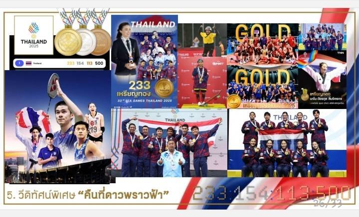 แห่งประเทศไทยในพระบรมราชูปถัมภ์โดยจัดงานเชิดชูเกียรติและร่วมภาคภูมิใจกับความสำเร็จของทุกภาคส่วน ที่ร่วมกันสร้างชัยชนะครั้งประวัติศาสตร์ในการแข่งขันกีฬาซีเกมส์ครั้งที่ 33 โดยสามารถทำผลงานได้ 233 เหรียญทอง, 154 เหรียญเงิน และ113 เหรียญทองแดง รวมทั้งสิ้น 500 เหรียญซึ่งนับเป็นจำนวนเหรียญที่มากที่สุดในประวัติศาสตร์การแข่งขันกีฬาซีเกมส์