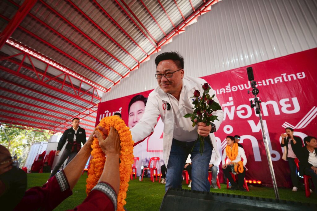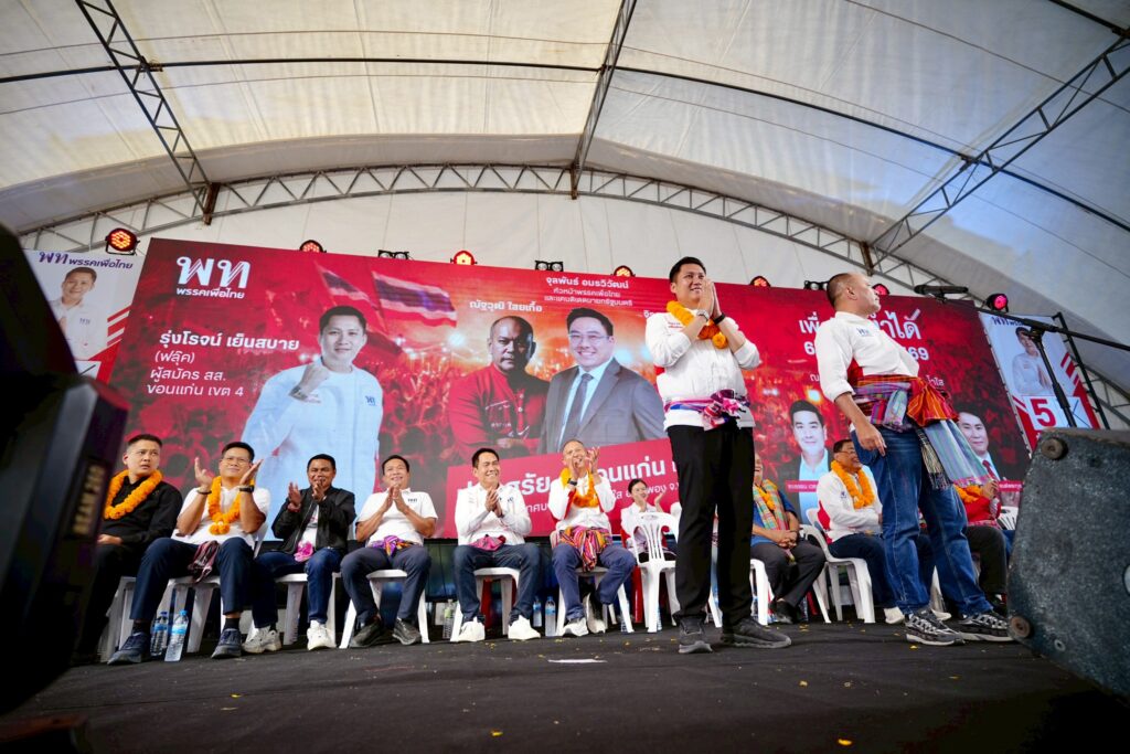 บรรยากาศเวทีปราศรัยหาเสียงของพรรคเพื่อไทย ที่สนามกีฬาเทศบาลตำบลกุดน้ำใส อำเภอน้ำพอง จังหวัดขอนแก่น เป็นไปอย่างคึกคัก มีประชาชนราวหนึ่งหมื่นคนแห่เข้าฟังอย่างเนืองแน่น โดยมีนายจุลพันธ์ อมรวิวัฒน์หัวหน้าพรรคและแคนดิเดตนายกรัฐมนตรี, นายณัฐวุฒิ ใสยเกื้อ ผู้อำนวยการครอบครัวเพื่อไทย และนางสาวจิราพร สินธุไพร อดีตรัฐมนตรีประจำสำนักนายกรัฐมนตรี ร่วมปราศรัยช่วยนายรุ่งโรจน์ เย็นสบาย ผู้สมัครสส.เขต 4 ขอนแก่น เบอร์ 5