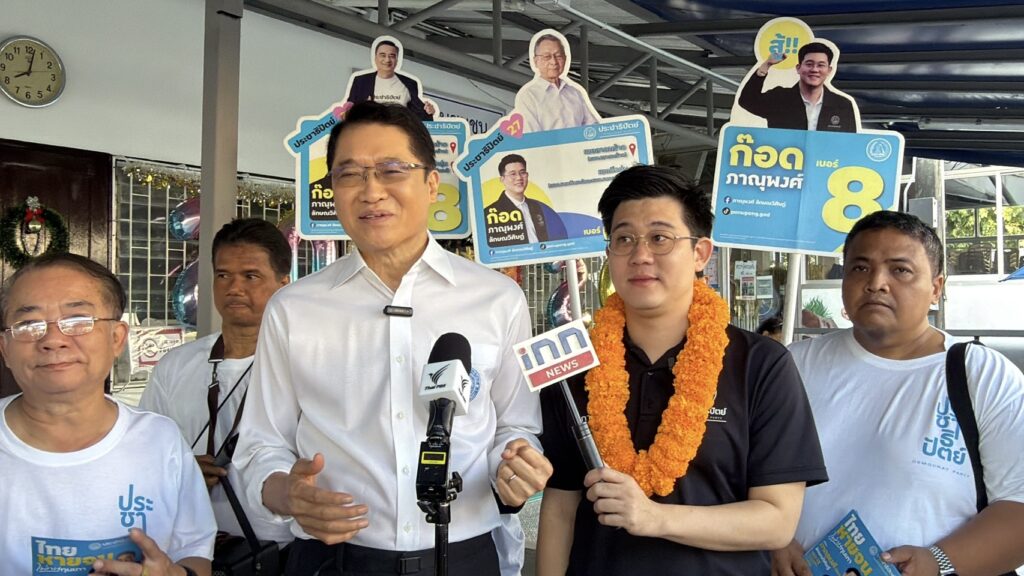 “องอาจ” เดินตลาดช่วย “ภาณุพงศ์“ หลานจุรินทร์ หาเสียง กทม.เขต 13 ชาวบ้านแห่ให้กำลังใจ บอกคราวนี้เลือก ปชป. เชื่อกระแสพรรคดึงฐานเสียงเก่ากลับมา