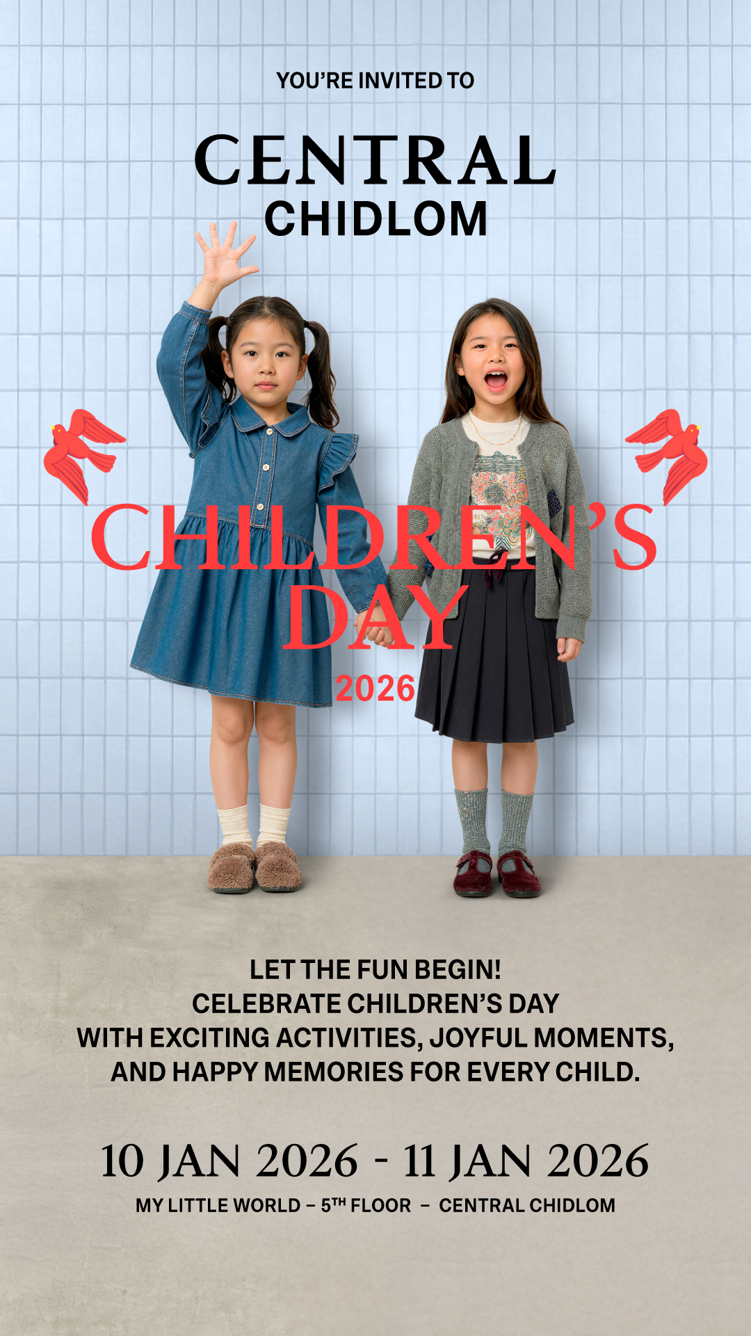 เตรียมตัวมาสนุกกับ CENTRAL CHILDREN’S DAY 2026 กับกิจกรรมจุดประกายความฝันและแรงบันดาลใจให้กับเด็กๆ วันที่ 10 มกราคม 2569 – วันที่ 11 มกราคม 2569 ที่ห้างเซ็นทรัลชิดลม ห้างเซ็นทรัลสาขาที่ร่วมรายการ ทั่วประเทศ และที่เซ็นทรัล เอ็มบาสซี