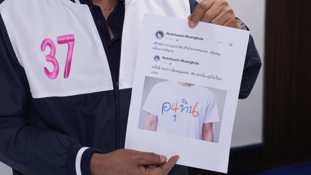 นายศุภชัย ใจสมุทร ผู้สมัคร สส.บัญชีรายชื่อ แกนนำพรรคภูมิใจไทย กล่าวว่า ขณะนี้พบกระบวนการดำเนินการที่ผิดกฎหมายเลือกตั้งในสื่อสังคมออนไลน์ โดยมีการเผยแพร่ข้อมูลเท็จ หลอกลวง สร้างความสับสนให้กับผู้มีสิทธิเลือกตั้ง เช่น การโพสต์ข้อความในเฟซบุ๊กเชิญชวนให้ “เข้าคูหากาเบอร์ 46 ทั่วประเทศนะคะ เสี่ยหนูนโยบายดีมาก” พร้อมตกแต่งตัวเลขชื่อ “อนุทิน” ให้กลายเป็นเลข 46 ซึ่งไม่ใช่หมายเลขของพรรคภูมิใจไทย แต่เป็นของพรรคประชาชน โดยความเป็นจริงแล้ว พรรคภูมิใจไทยได้หมายเลข 37 บัตรสีชมพู การกระทำดังกล่าว เข้าข่ายผิดกฎหมายเลือกตั้งตามมาตรา 73