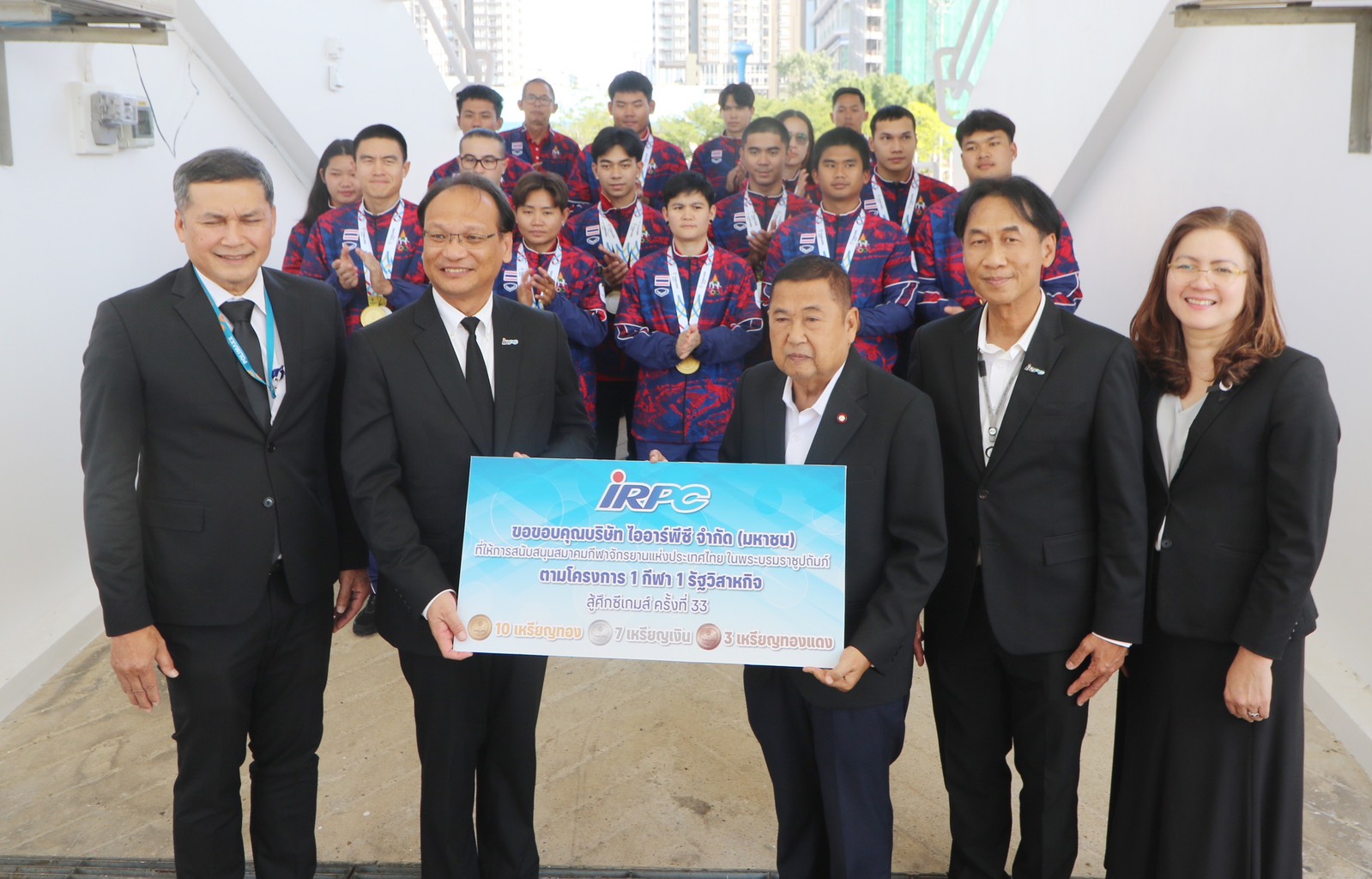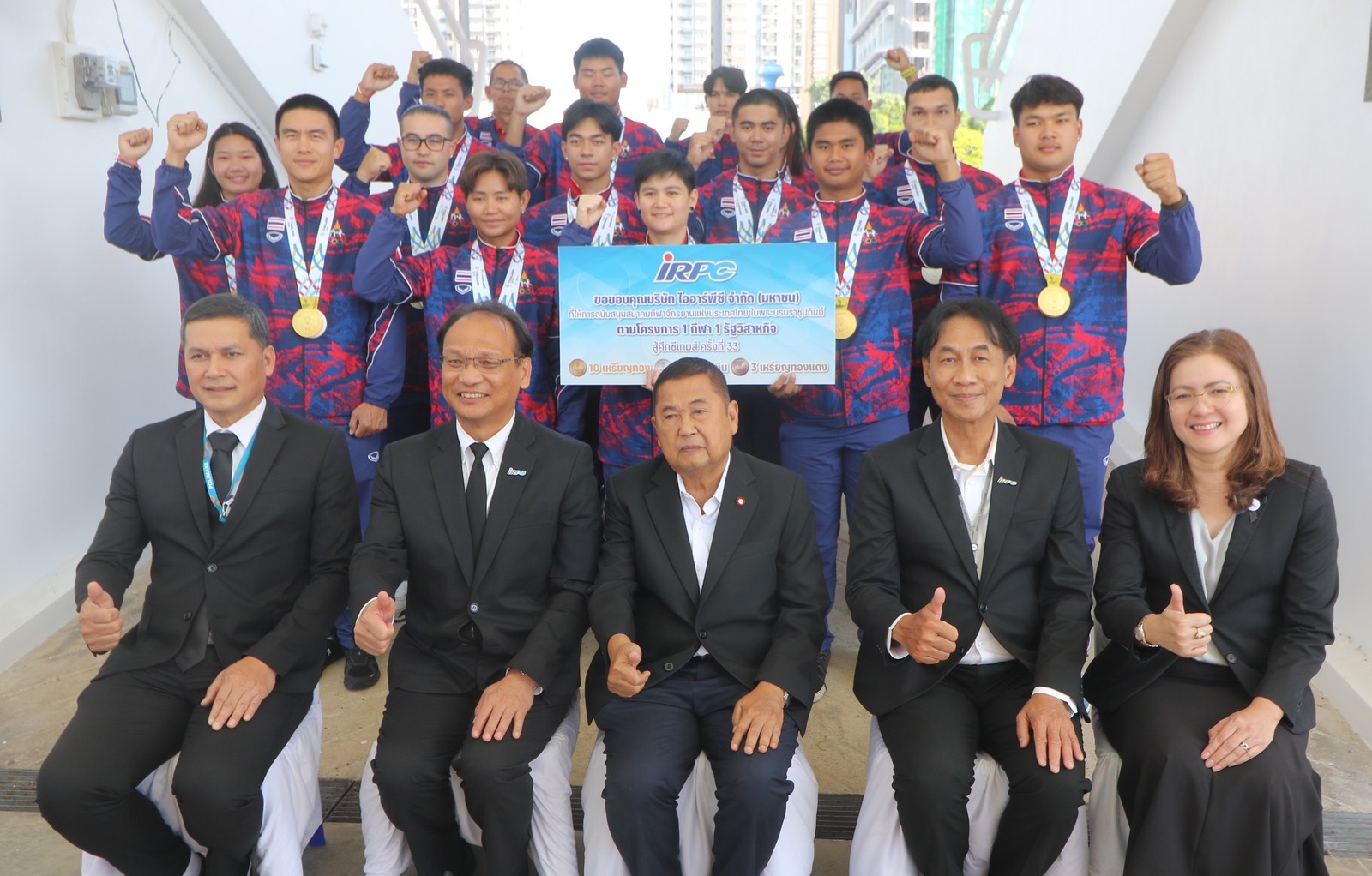 นายเทอดเกียรติ พร้อมมูล ประธานเจ้าหน้าที่บริหารและกรรมการผู้จัดการใหญ่ บริษัท ไออาร์พีซี จำกัด (มหาชน) กล่าวว่า วันนี้รู้สึกดีใจที่ได้มาแสดงความยินดีกับนักกีฬาจักรยานทีมชาติไทยที่ได้รับเหรียญรางวัลในการแข่งขันกีฬาซีเกมส์ ครั้งที่ 33 นับว่าเป็นเกียรติและภูมิใจเป็นอย่างยิ่งที่ บมจ.ไออาร์พีซี ได้ให้การสนับสนุนสมาคมกีฬาจักรยานแห่งประเทศไทยฯ ซึ่งผลการแข่งขันจักรยานในกีฬาซีเกมส์ก็เป็นที่ประจักษ์ว่านักกีฬาจักรยานทีมชาติไทยไม่แพ้ใครในอาเซียน บมจ.ไออาร์พีซี รู้สึกดีใจเป็นอย่างมากที่ได้เป็นส่วนหนึ่งในความสำเร็จของสมาคมกีฬาจักรยานฯ และนักกีฬาทุกคน และหวังเป็นอย่างยิ่งว่านอกจาก บมจ.ไออาร์พีซี ก็จะมีองค์กรต่าง ๆ เข้ามาสนับสนุนสมาคมกีฬาจักรยานฯ ในการยกระดับให้ประสบความสำเร็จยิ่ง ๆ ขึ้นไป