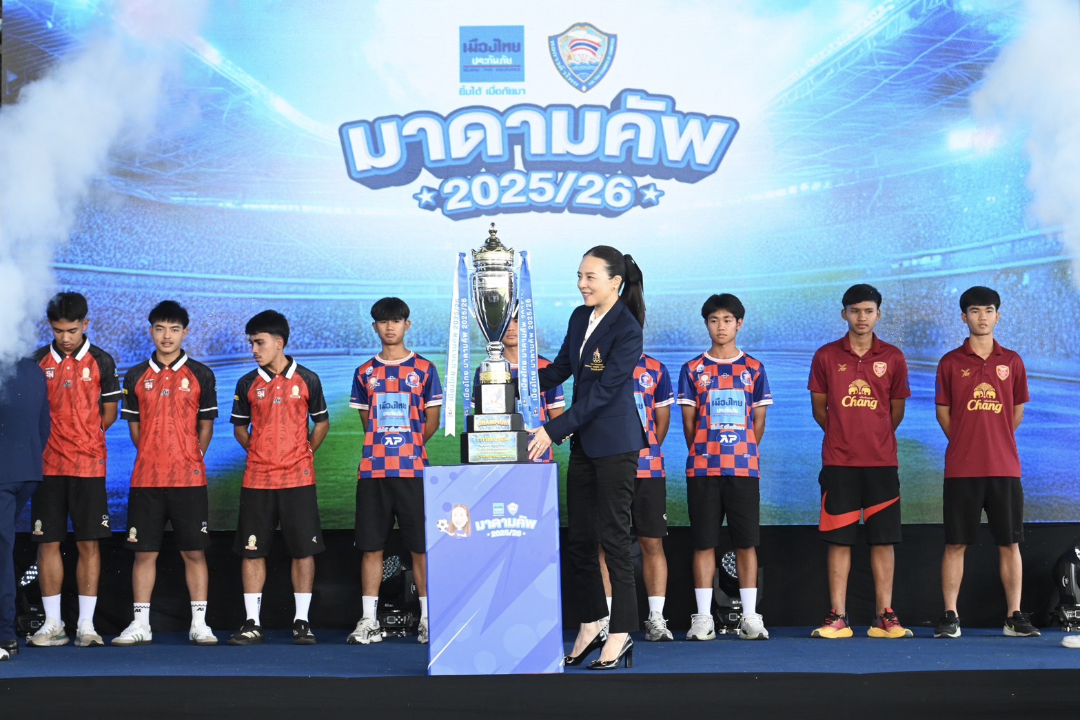 “มาดามแป้ง” นวลพรรณ ล่ำซำ ประธานเจ้าหน้าที่บริหาร บริษัท เมืองไทยประกันภัย จำกัด (มหาชน) เป็นประธาน แถลงข่าว การแข่งขันฟุตบอลเยาวชน 7 คน รุ่นอายุไม่เกิน 17 ปี รายการ “เมืองไทย มาดามคัพ 2025/26” ที่สนามฟุตบอล Super Star Arena ลาดพร้าว 80 เมื่อวันที่ 9 มกราคม 2569 โดยนับเป็นการจัดการแข่งขันครั้งที่ 4 ติดต่อกัน พร้อมตอกย้ำความยิ่งใหญ่กว่าเดิม ในฐานะรายการฟุตบอลเยาวชน 7 คน ระดับโรงเรียน ที่มีเงินรางวัลรวมสูงสุดในประเทศไทย กว่า 1,000,000 บาท พร้อมคัดเลือกผู้เล่นทรงคุณค่า (MVP) ไปฝึกฟุตบอลกับสโมสร อวิสป้า ฟูกูโอกะ ในศึกเจลีก 1 ที่ประเทศญี่ปุ่น เป็นเวลา 2 สัปดาห์