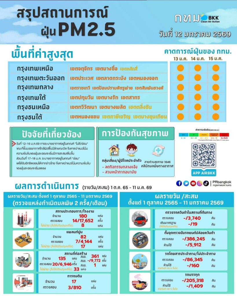 12 อันดับ ของค่าฝุ่นPM2.5 เขตสูงสุดในกรุงเทพมหานคร