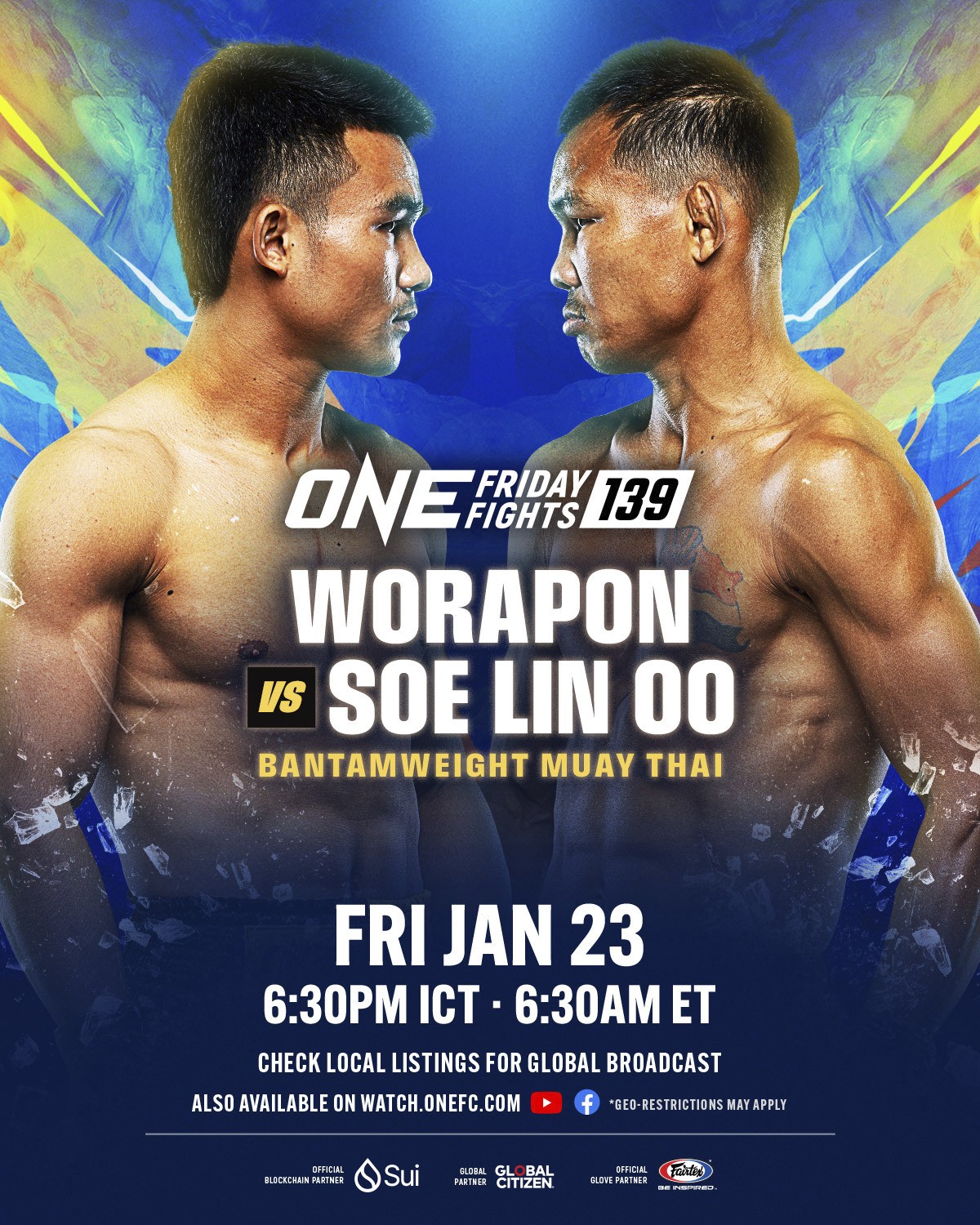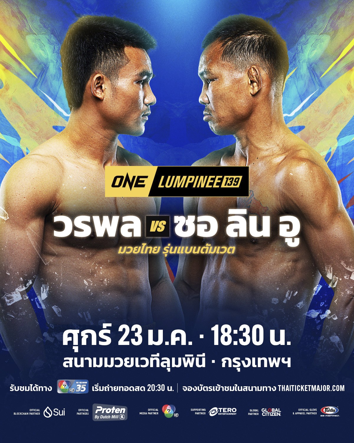 “วรพล ลูกเจ้าพ่อโรงต้ม” มวยซ้ายฟอร์มดุ วัย 23 ปี จากบุรีรัมย์ ท้าชนอึด “ซอ ลิน อู” กำปั้นสายแข็งชาวกะเหรี่ยง วัย 34 ปี จากเมียนมา โดยมีแต้มชัยเพื่อกู้ศรัทธาเป็นเดิมพัน พร้อมสู้กันภายใต้กติกามวยไทย รุ่นแบนตัมเวต (135-145 ป.) ในคู่เอกศึก ONE ลุมพินี 139 วันศุกร์ที่ 23 ม.ค. 69 ที่สนามมวยเวทีลุมพินี (รามอินทรา) เริ่มเวลา 18.30 น.