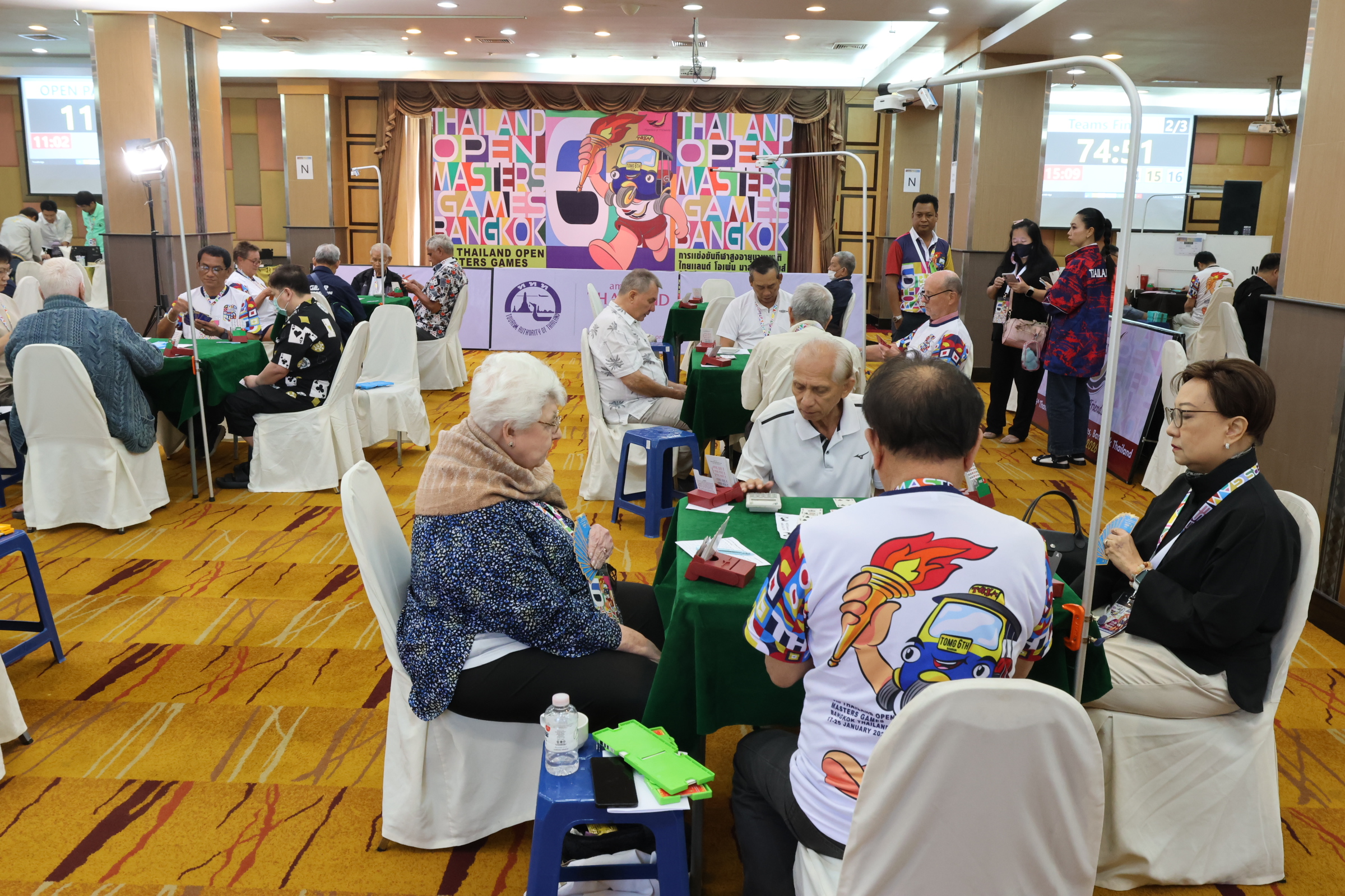 ทีมบริดจ์ไทย ได้ 1 เงิน ประเภทคู่จาก โรเชลล์ เปาทอง ชาวอเมริกันสัญชาติไทย อายุ 82 ปี อดีตอาจารย์สอนภาษาอังกฤษ และ ปู-กษมา กู้ตลาด อดีตแอร์โฮสเตสของการบินไทย วัย 69 ปี ด้าน ประเภทที่ม ได้ 2 เหรียญทองแดง ไทยแลนด์ โอเพ่น มาสเตอร์เกมส์