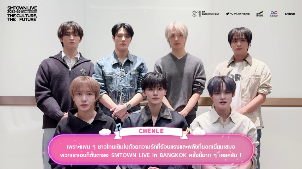 เหล่าศิลปินจากค่าย SM ENTERTAINMENT (เอสเอ็ม เอนเทอร์เทนเมนต์) ส่งความรักและคิดถึงมาทักทายแฟนคลับชาวไทย ยืนยันความพร้อมในการเดินทางมาสร้างความประทับใจครั้งยิ่งใหญ่ในคอนเสิร์ตระดับโลก ‘SMTOWN LIVE 2025-26 [THE CULTURE, THE FUTURE] in BANGKOK’ (เอสเอ็มทาวน์ ไลฟ์ ทูเธาซันด์ทเวนตี้ไฟว์-ทเวนตี้ซิกซ์ [เดอะ คัลเจอร์, เดอะ ฟิวเจอร์] อิน แบงค็อก) ซึ่งจะจัดขึ้นในวันเสาร์ที่ 14 กุมภาพันธ์ 2026 เวลา 18:00 น. ณ ราชมังคลากีฬาสถาน สเตเดียมที่ใหญ่ที่สุดในประเทศไทย