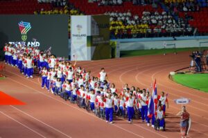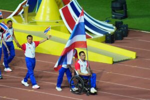 อีกหนึ่งไฮไลต์สำคัญคือขบวนพาเหรดนักกีฬา โดยทัพนักกีฬาไทยเข้าสู่สนามอย่างสง่างาม นำโดย ประวัติ วะโฮรัมย์ นักกีฬาวีลแชร์เรซซิ่ง เจ้าของ 7 เหรียญทองพาราลิมปิกเกมส์ ทำหน้าที่ถือธงไตรรงค์นำขบวน สร้างเสียงปรบมือกึกก้องทั่วสนาม