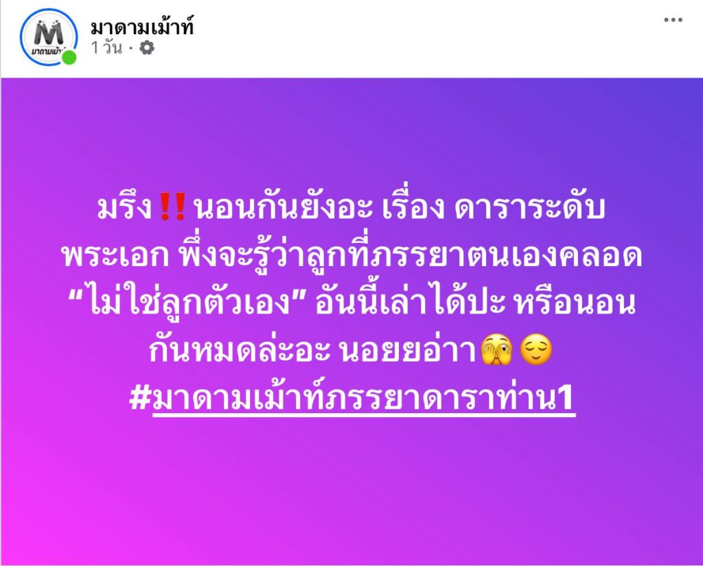ตกเป็นที่หลายคนให้ความสนใจมาก ต่อมเผือกกระตุกต้องสวมฟิวนักสืบโคนัน หลังจากที่ทางนักข่าวเพจ “มาดามเมาท์” ออกพูดว่า “มรึงนอนกันยังอะ เรื่อง ดาราระดับพระเอก พึ่งจะรู้ว่าลูกที่ภรรยาตนเองคลอด “ไม่ใช่ลูกตัวเอง” อันนี้เล่าได้ปะ หรือนอนกันหมดล่ะอะ นอยยอ่าา”