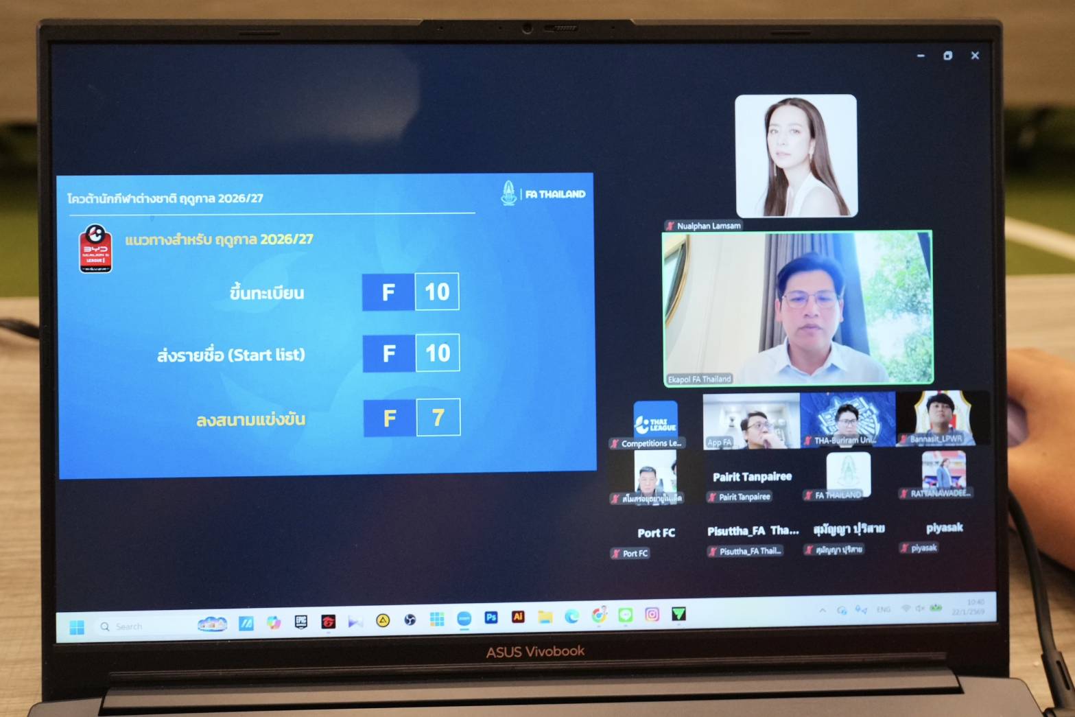 วันนี้ (22 มกราคม 2569) เวลา 10.30 น. สมาคมกีฬาฟุตบอลแห่งประเทศไทยฯ ได้จัดการประชุม ร่วมกับสโมสรสมาชิกฟุตบอลลีก อาชีพ ในไทยลีก 1 (BYD SEALION 6 LEAGUE 1) ทั้ง 16 สโมสร ผ่านระบบ ออนไลน์ (Zoom Meeting) ณ ห้องประชุมสมาคม ชั้น 2 เพื่อเตรียมความพร้อม สำหรับการแข่งขันฟุตบอลไทยลีก 1 ฤดูกาลหน้า (2026/27)